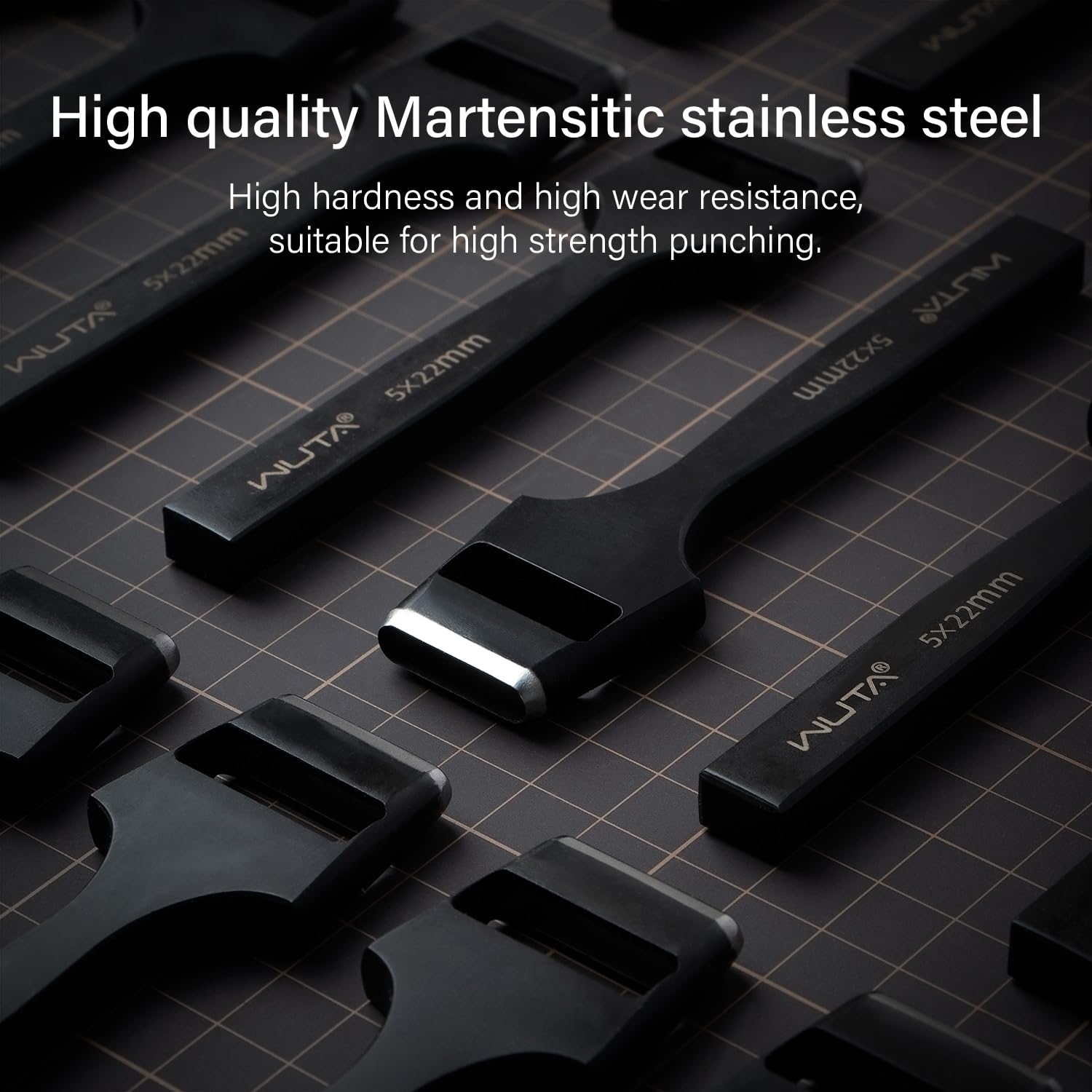 Für alle Leder-Begeisterten und Hobby-Handwerker: Dieses WUTA Lochstanzer-Set ist dein neuer bester Freund! Mit den 5 verschiedenen Größen kriegst du jedes Leder-Projekt perfekt hin. \\n\\nIm Set enthalten: \\n• 5 Lochstanzer in verschiedenen Größen \\n• Material: Hochwertiger Kohlenstoffstahl \\n• Farbe: Schwarz \\n• Klare Größenmarkierungen auf jedem Werkzeug \\n\\nEinsatzgebiete: \\n• Gürtel herstellen \\n• Brieftaschen \\n• Uhrenarmbänder \\n• Taschen \\n• Schuhe \\n• Hüte \\n• Und alle möglichen DIY-Projekte \\n\\nSo geht's: \\n• Werkzeug senkrecht aufs Leder setzen \\n• Leicht klopfen, dann mit Druck durchstoßen \\n• Bei größeren Löchern (>15mm) mehrmals bearbeiten \\n\\nWichtig: Die Werkzeuge sind nach der Produktion mit Rostschutzöl behandelt. Vor dem ersten Gebrauch also unbedingt abwischen! Und wenn du sie länger nicht benutzt, wieder einölen. \\n\\nDas spezielle Design schont das Leder und die scharfen Zähne sorgen für saubere Löcher. Profi-Qualität für dicke Materialien - was will man mehr? \\n\\nOb du nun Profi bist oder gerade erst mit Lederarbeit anfängst - mit diesem Set machst du nichts verkehrt!