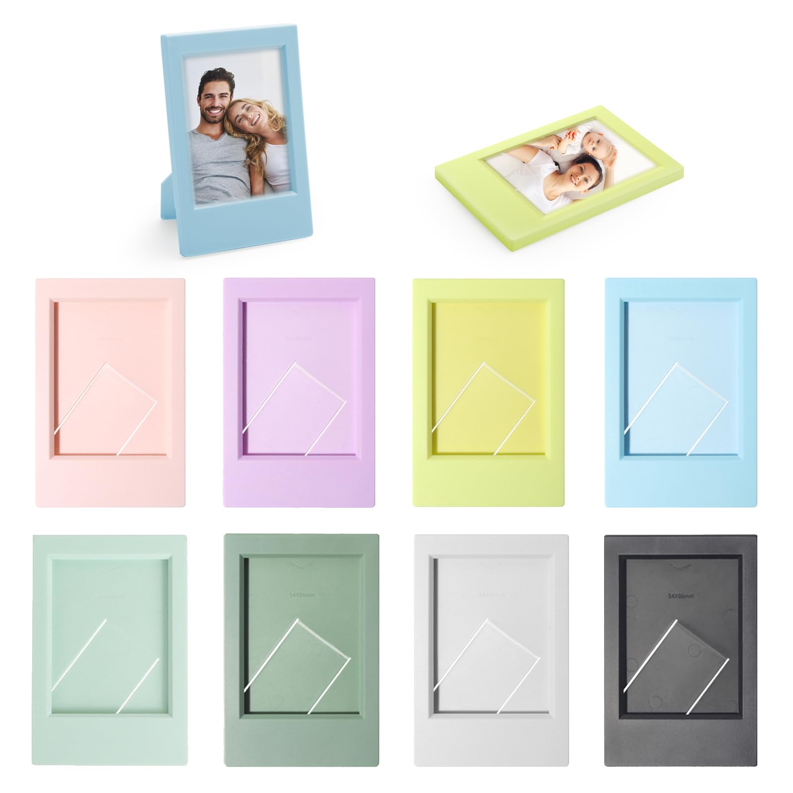 So süß! Diese 8 bunten Mini-Bilderrahmen sind perfekt für deine Polaroid und Instax Fotos. Mit 9,2x6,1cm passen sie genau zu den beliebten Sofortbild-Kameras. Jeder Rahmen hat einen Standfuß, sodass du sie sowohl hochkant als auch quer hinstellen kannst. Die satten Farben bringen sofort gute Laune ins Zimmer - ob auf dem Schreibtisch, Regal oder Nachttisch. Super einfach zu bedienen: Foto rein schieben, fertig! Perfekt als Geschenk für Foto-Fans oder um eigene Erinnerungen stylisch zu präsentieren.