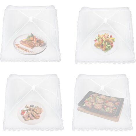 Schütz dein Essen vor lästigen Besuchern! Dieses praktische 2er-Set Fliegenhauben hält Fliegen, Insekten und Staub von deinen Speisen fern. Wie ein Regenschirm aufklappbar - super einfach zu handhaben. Aus lebensmittelechtem Nylon-Netz mit stabilem Stahlrahmen. Leicht (nur 45g pro Stück) und platzsparend zusammenfaltbar. Perfekt für Küche, Garten, Picknick, Camping oder Grillpartys. Einfach reinigen, wiederverwendbar und dein Essen bleibt sichtbar frisch. Maße: 32x32cm - ideal für Teller, Schüsseln oder Snackplatten.