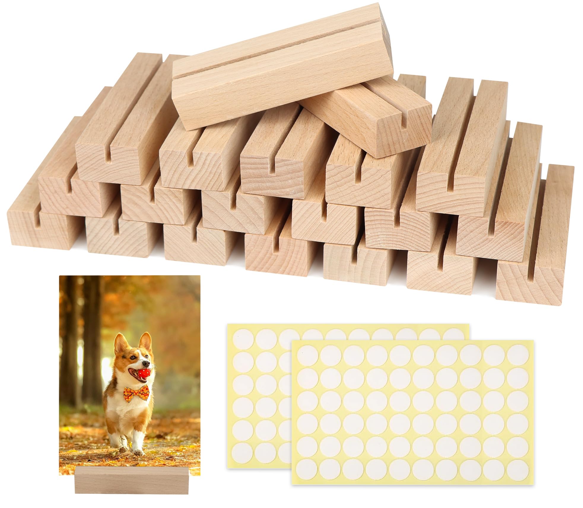 Hey, suchst du noch eine praktische Lösung für deine Tischdekoration? Diese 4 Holzkartenhalter sind genau das Richtige! Aus hochwertigem, zuverlässigem Holz gefertigt, sehen sie nicht nur schick aus, sondern sind auch super stabil. Mit den Maßen 10x3x2 cm passen sie perfekt auf jeden Tisch und nehmen kaum Platz weg. Der 5 mm breite Schlitz ist ideal für Kalender, Postkarten, Fotos oder Tischkarten - alles bleibt sicher stehen und kippt nicht um! Die beige Farbe passt zu jeder Einrichtung und verleiht deinem Schreibtisch oder Esstisch eine elegante Note. Perfekt für die Organisation im Büro, als Fotoständer für deine Lieblingsbilder oder als Tischkartenhalter bei Feiern. Die vier Stück im Set geben dir genug Flexibilität für verschiedene Einsatzmöglichkeiten. Einfach die Karte reinstecken und fertig - keine komplizierte Montage nötig! Robust, langlebig und ästhetisch ansprechend - diese Holzkartenhalter sind ein echter Allrounder für Zuhause oder Büro. Mach deinen Tisch schick und organisiert!