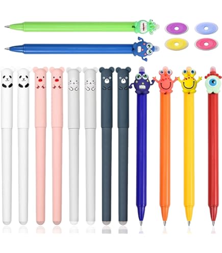 So macht Schreiben Spaß! Diese 12 super niedlichen Gelschreiber begeistern mit süßen Cartoon-Motiven von Bären und Pfirsichen. Jeder Stift hat ein einzigartiges Design und weckt sofort die Vorfreude aufs Schreiben. Mit 0,5 mm Feinmine und schwarzer Tinte schreiben sie besonders glatt und gleichmäßig. Das einziehbare Design ist super praktisch - einfach die Kappe drücken und die Spitze kommt raus oder verschwindet wieder. So geht keine Kappe verloren und die Tinte trocknet nicht aus. Der stabile Clip am Stift ermöglicht das Befestigen an Heften oder Taschen. Die Tinte trocknet schnell und macht keine Flecken. Perfekt für Schule, Büro oder Zuhause - ob für Hausaufgaben, Notizen oder kreative Projekte. Ein tolles Geschenk für alle, die niedliche Schreibwaren lieben!