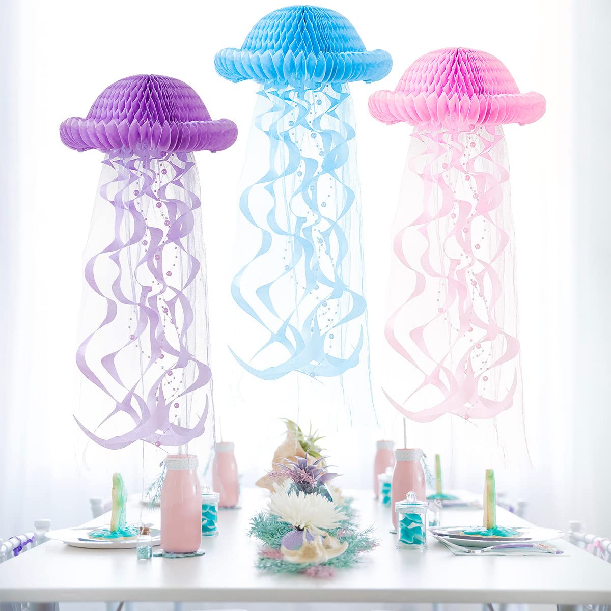 Tauche ein in eine magische Unterwasserwelt! Diese 6 Quallen-Laternen verwandeln jeden Raum in ein ozeanisches Paradies. In drei bezaubernden Farben - blau, hellblau und hellgrün - schweben sie wie echte Quallen durch den Raum. Jede Laterne hat 25cm Durchmesser und mit den 55cm langen Quasten eine Gesamtlänge von 82cm. Einfach den Metallrahmen einsetzen, aufhängen und schon ist die Deko fertig! Perfekt für Meerjungfrauen-Partys, Geburtstage, Babyshowers oder jede Party mit Unterwasser-Motto. Nach der Party einfach den Rahmen entfernen und die Laternen platzsparend verstauen. Aus hochwertigem Papier gefertigt, umweltfreundlich und wiederverwendbar. Ob im Kinderzimmer, Garten oder Partyraum - diese Laternen sorgen für strahlende Kinderaugen und begeisterte Gäste!