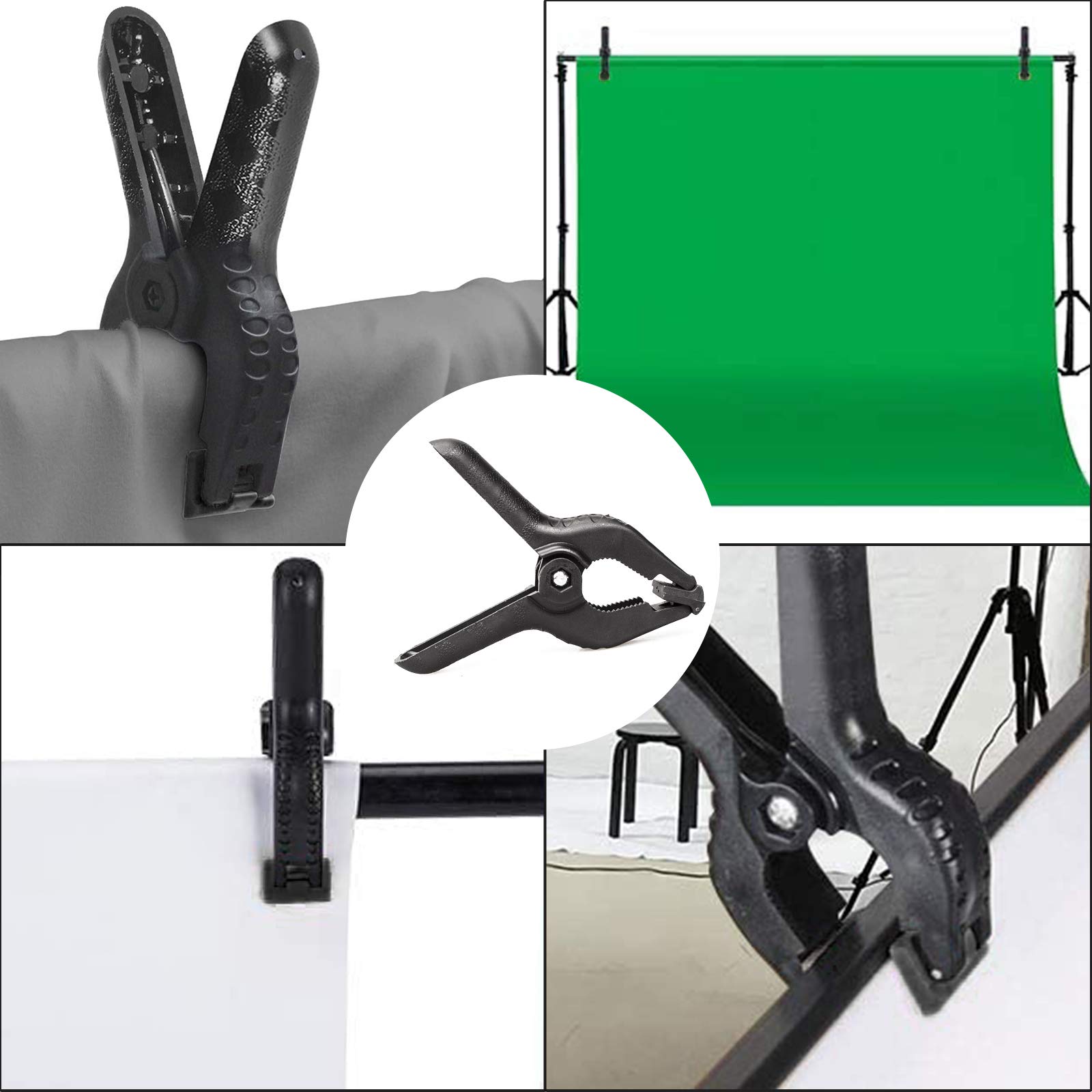 Hey, hast du genug von wackeligen Kulissen und verrutschten Leinwänden? Mit diesen 12 robusten Federklammern aus Nylon wird das Befestigen zum Kinderspiel! Perfekt für dein Fotostudio - ob für Green Screens, Hintergründe oder Musselin-Tücher. Die Drehpolster an den Enden schonen selbst empfindliche Oberflächen und passen sich jeder Form an. \\n\\nPraktisch: Die 10 cm großen Klammern öffnen sich bis zu 6,5 cm und greifen sicher um Stative und Stangen. Aus faserverstärktem Nylon halten sie ordentlich was aus, sind dabei aber superleicht. Der rutschfeste Griff liegt gut in der Hand, selbst bei längeren Arbeiten. \\n\\nNicht nur für Profis: Ob du Bastelprojekte fixieren, Mal-Leinwände spannen oder Holzarbeiten sichern willst - diese Alleskönner machen jeden Job einfacher. Kleiner Tipp: Lieber drinnen nutzen, da UV-Strahlung auf Dauer das Material angreift. Mit den 6 schwarzen Klammern im Set bist du für alle Fälle gewappnet!