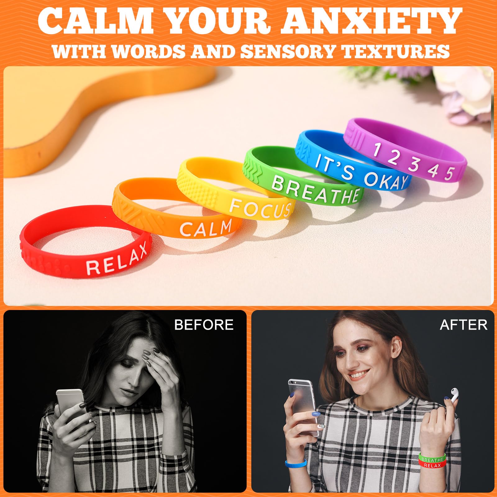 Diese Armbänder sind echt genial für alle, die manchmal mit Stress, Angst oder Unruhe zu kämpfen haben! Das Set hat 30 Stück in verschiedenen Morandi-Farben, jedes mit einer anderen strukturierten Oberfläche zum Drücken und Spielen. Aufgedruckt sind beruhigende Worte wie 'CALM', 'RELAX', 'FOCUS', 'BREATHE', 'IT'S OK' und '31,356.3 cm'. Aus weichem Silikon gefertigt, sind sie super angenehm zu tragen und halten auch täglicher Nutzung stand. So geht's: Einfach ums Handgelenk legen und wenn du Druck oder Angst spürst, mit den Fingern über die strukturierte Oberfläche fahren. Dabei ruhig atmen und langsam entspannen. Perfekt für Menschen mit ADHS, Autismus oder einfach für stressige Momente im Alltag. Die Armbänder sind leicht und passen in jede Tasche - immer griffbereit wenn du sie brauchst. Ob in der Schule, bei der Arbeit oder unterwegs - sie helfen, die Hände zu beschäftigen und den Geist zu beruhigen. Ein tolles Geschenk für Freunde und Familie, das zeigt, dass du an sie denkst. Einfach umlegen und durchatmen!