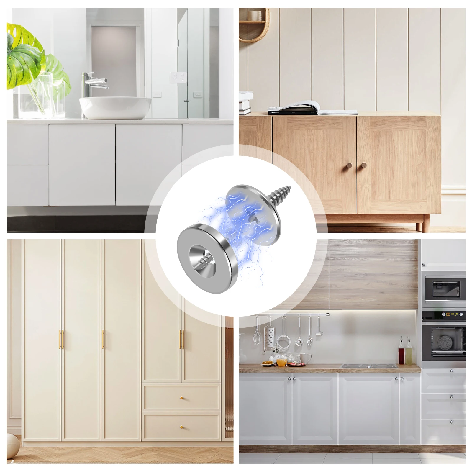 Endlich schließen alle Schranktüren perfekt! Dieses Set mit 5 magnetischen Schrankschnäppern löst alle deine Türprobleme! Die starken Magnete sorgen dafür dass Türen und Schubladen sicher schließen - kein lästiges Klappern mehr! Einfach zu montieren - keine komplizierte Installation nötig! Aus Metall mit Chrom-Oberfläche - rostfrei und mega langlebig! Die Riegel haben 15,6mm Durchmesser und passen für die meisten Schränke! Perfekt für Küchenschränke, Kleiderschränke, Schiebetüren - überall wo Türen nicht richtig schließen! Das silberfarbene Finish sieht nicht nur gut aus sondern passt auch zu den meisten Einrichtungsstilen! Wenn du also die Nase voll hast von quietschenden oder nicht richtig schließenden Türen - hier ist deine Lösung! Einfach anbringen und sich über ruhige Schränke freuen!