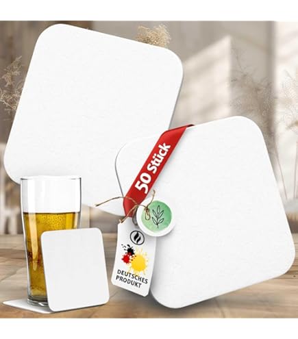 Hallo kreative Köpfe! Diese blanko Bierfilze von Ursus sind perfekt für alle Bastelprojekte! Du bekommst 25 stabile, weiße Bierdeckel in der Größe 9,3x9,3cm - ideal zum Bemalen, Bekleben oder Bedrucken. Ob du nun personalisierte Untersetzer für deine nächste Party machen willst, ein Memory-Spiel basteln möchtest oder Medaillen für deine Kinder - mit diesen Bierfilzen sind deiner Kreativität keine Grenzen gesetzt! Die eckige Form ist praktisch und die Oberfläche nimmt Farben und Stifte super an. Tolle Ideen: Bemalen mit Acrylfarben, Bekleben mit Fotos, Beschriften für besondere Anlässe oder als Grundlage für Weihnachtsdekoration! Die Qualität ist robust - sie saugen Flüssigkeiten gut auf und sind trotzdem stabil. Perfekt für Kindergärten, Schulen, aber auch für Erwachsene die gerne basteln. Super für Geburtstagsfeiern, Hochzeiten oder einfach mal ein kreativer Nachmittag zu Hause! Die Lieferung kommt flach und platzsparend - einfach zusammenfalten wenn needed. Mach deine nächste Party unvergesslich mit personalisierten Bierdeckeln oder schenke selbstgemachte Geschenke von Herzen! Einfach bestellen und losbasteln - deine Freunde und Familie werden begeistert sein!