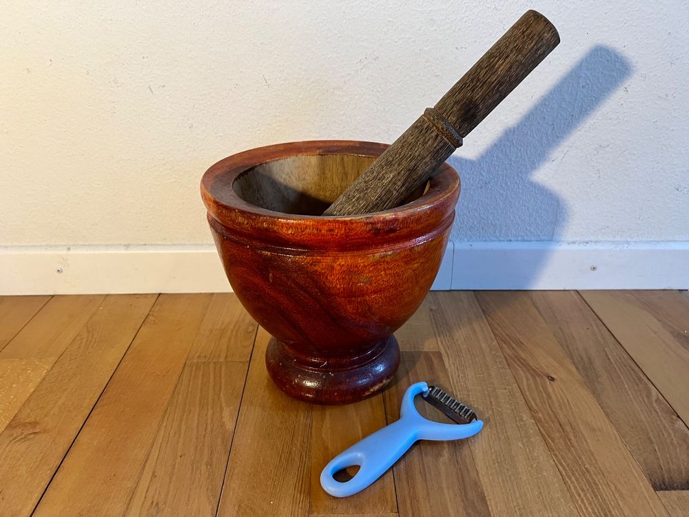 Mann, dieser thailändische Mörser von DDPremium ist einfach authentisch! Hergestellt aus natürlichem Ton in Thailand - jedes Stück ein Unikat mit leichten Variationen in Farbe und Größe. Perfekt für alle, die gerne asiatisch kochen: Ob klassischen Papaya-Salat, scharfe Nam Prik Chilipaste, Currypasten oder Marinaden - damit klappt's einfach besser! Die extra tiefe, kegelförmige Schüssel ist ideal zum Zerkleinern und Mischen von Zutaten, damit sich die Aromen richtig gut verbinden können. Der Holzstößel ist schön lang, liegt gut in der Hand und macht das Stampfen echt einfach. Auch für Gewürzrubs, Tapenaden, Pestos oder Vinaigrette-Dressing super geeignet. Die Größe von etwa 17,8x17,8cm ist praktisch für die heimische Küche, aber auch für Restaurants geeignet. Einfach wie einen normalen Topf reinigen und trocknen lassen. Wenn du auf authentische Thai-Küche stehst, ist dieses Set ein Muss - und dabei noch total preiswert für so ein qualitativ hochwertiges, handgemachtes Produkt!