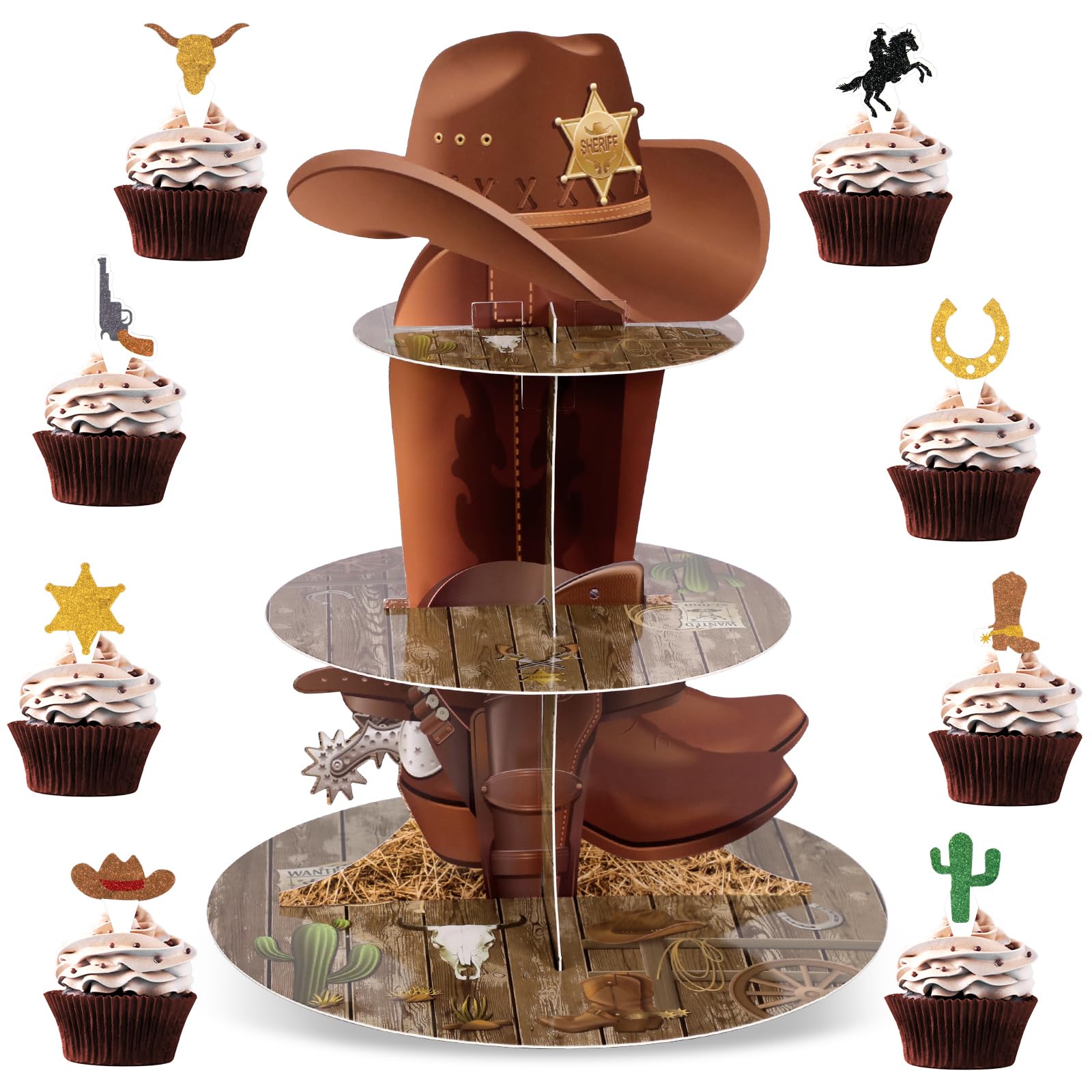 Yeehaw! Mach deine Cowboy-Party perfekt mit diesen coolen Cupcake-Ständern im Western-Design. Im 2er-Pack mit je 3 Etagen - Platz für bis zu 24 Cupcakes! Die Ebenen haben 30cm, 24,1cm und 19,1cm Durchmesser. Das Design mit Scheunentüren und Cowboy-Motiven sorgt für echte Wilder-Westen-Atmosphäre. Perfekt für Cowboy-Geburtstage, Babypartys oder Western-Themenpartys. Aus hochwertigem, wasserdichtem Material - robust und wiederverwendbar. Super einfach aufzubauen, ganz ohne Werkzeug. Nach der Party platzsparend verstauen. Ob für die erste Rodeo-Party deines Kleinen oder einen Western-Abend mit Freunden - diese Ständer sind der Hit! Deine Gäste werden begeistert sein von der authentischen Deko. Einfach Cupcakes draufstellen und die Party kann beginnen! Hol dir den Wilden Westen nach Hause!