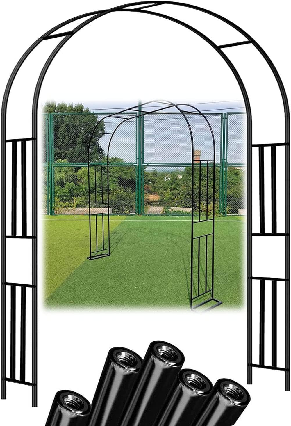 Dieser Gartenbogen mit Tor ist einfach der Hingucker in jedem Garten! Mit 235 cm Höhe und 108 cm Breite aus robustem Stahl gebaut, hält er ewig. Die schwarze Pulverbeschichtung schützt vor Rost und Wetter, sodass der Bogen auch nach Jahren noch toll aussieht. Das coole abschließbare Tor gibt deinem Garten nicht nur Style, sondern auch mehr Privatsphäre. Perfekt für Kletterpflanzen wie Rosen, Clematis oder Efeu - die ranken daran hoch und schaffen eine richtig gemütliche Atmosphäre. Du kannst den Bogen aber auch mit Lichtern, Tüll oder anderen Deko-Ideen verschönern. Einfach als Eingang, Durchgang oder einfach als Blickfang im Garten. Montage ist kein Problem, die Anleitung ist leicht verständlich. Mach deinen Garten zu deinem persönlichen Paradies!
