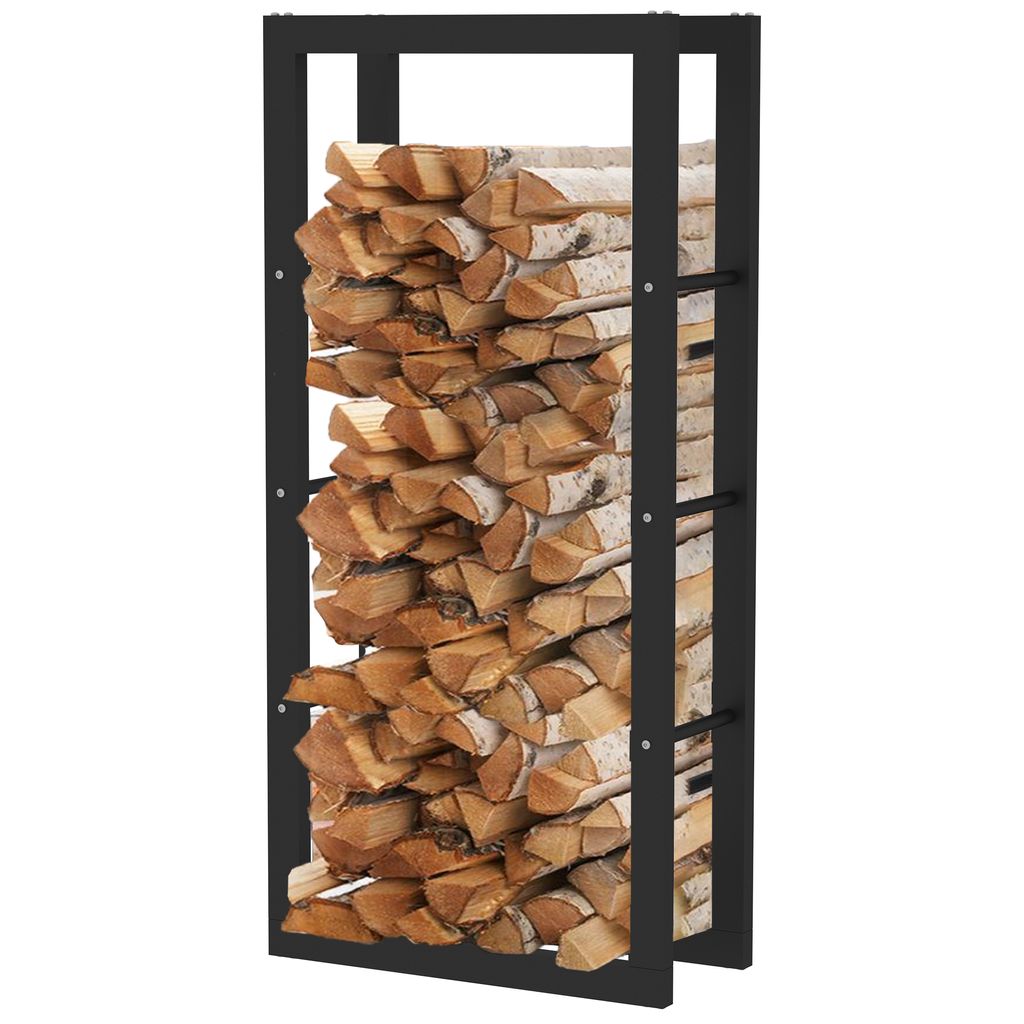 Ordnung am Kamin! Dieses schlanke Holzregal im modernen Design bringt System in deine Brennholzlagerung. Mit 170 cm Höhe nutzt es die Raumhöhe optimal aus - platzsparend und stylisch!\\n\\nDrei Etagen bieten reichlich Stauraum: Unten die dicken Scheite, oben das Anmachholz und die mittlere Ebene für alles dazwischen. Aus robustem Stahl 15x30 mm - hält auch schweren Holzmengen stand.\\n\\nDie schwarze matte Lackierung passt zu jedem Einrichtungsstil und ist pflegeleicht. Die erhöhte Konstruktion schützt deinen Boden vor Feuchtigkeit und Schmutz.\\n\\nMaße: 45x30x170 cm (LxBxH) - schlank genug für jede Ecke. Einfach aufstellen und sofort dein Holz ordentlich verstauen. Sieht nicht nur gut aus, sondern macht auch das Nachlegen bequemer. Perfekt kombiniert mit Kaminbesteck und Feuereimer für die komplette Kaminecke! Mach deinen Kaminbereich zur Wohlfühloase - aufgeräumt und gemütlich!