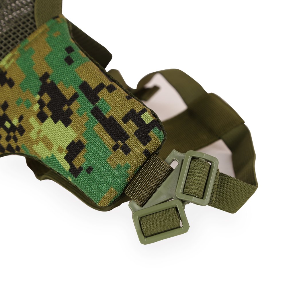 Maximaler Schutz mit stylischem Look! Diese taktische Halbmaske ist dein bester Begleiter für Airsoft, Paintball und Outdoor-Action. \\n\\nDas Stahlnetz-Gitter hat den ANSI Z80.3 Fallball-Test bestanden und hält Schläge bis 800 FPS aus - da kannst du dich voll und ganz aufs Spiel konzentrieren! \\n\\nSuper bequem: Das gefederte Netz ist leicht und faltbar, die verstellbaren Gummibänder sorgen für perfekten Sitz. Das weiche Nylongewebe an den Wangen schützt zusätzlich. \\n\\nFeatures: \\n• Stahlnetz mit Pulverbeschichtung \\n• Temperaturbeständig -10°C bis 42°C \\n• Umweltfreundliche Farbe \\n• 1000D Nylon-Gewebe \\n• Voll verstellbar \\n\\Einsatzgebiete: \\n• Airsoft und Paintball \\n• Jagd und Outdoor \\n• Radfahren \\n• CS-Spiele \\n• Survival-Training \\n\\nEinfach zusammenklappen und in die Tasche stecken - immer griffbereit für dein nächstes Abenteuer!