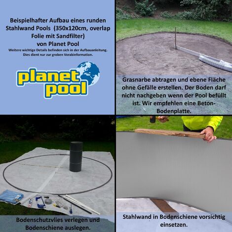 Wow, mit diesem Stahlwandpool von Summer Fun holst du dir den Badespaß in den Garten! Rund, 300 cm Durchmesser, 90 cm hoch - perfekt zum Abkühlen im Sommer. Die Stahlwand ist feuerverzinkt und gewellt für mehr Stabilität, die Innenfolie aus UV-stabilisierter PVC (0,2 mm, blau). Als Overlap-Variante - die Folie wird über den Stahlmantel gelegt und mit dem Handlauf fixiert. Handlauf und Bodenschiene aus Kunststoff sorgen für sicheren Halt. Du kannst den Pool aufstellen, teilweise eingraben oder komplett einbauen. Wichtig: Der Untergrund sollte eben sein - Betonplatte oder verdichteter Schotter. 'Made in Europe' mit über 60 Jahren Erfahrung - da weißt du, dass Qualität drinsteckt. Ob mit Kindern planschen oder einfach mal relaxen - dieser Pool macht Sommer noch schöner!