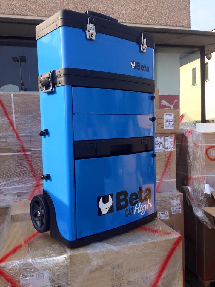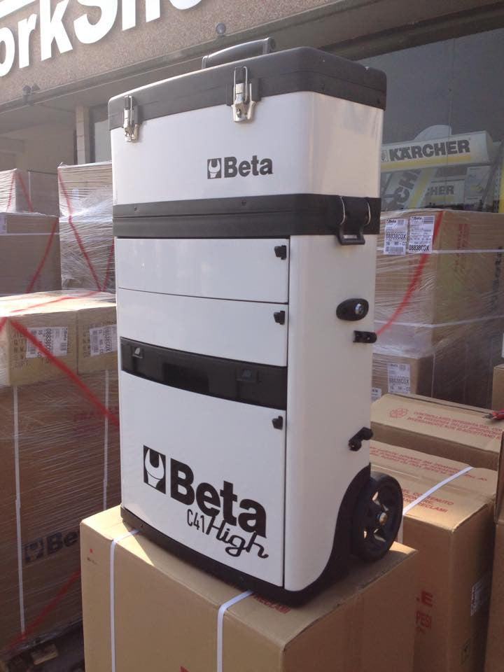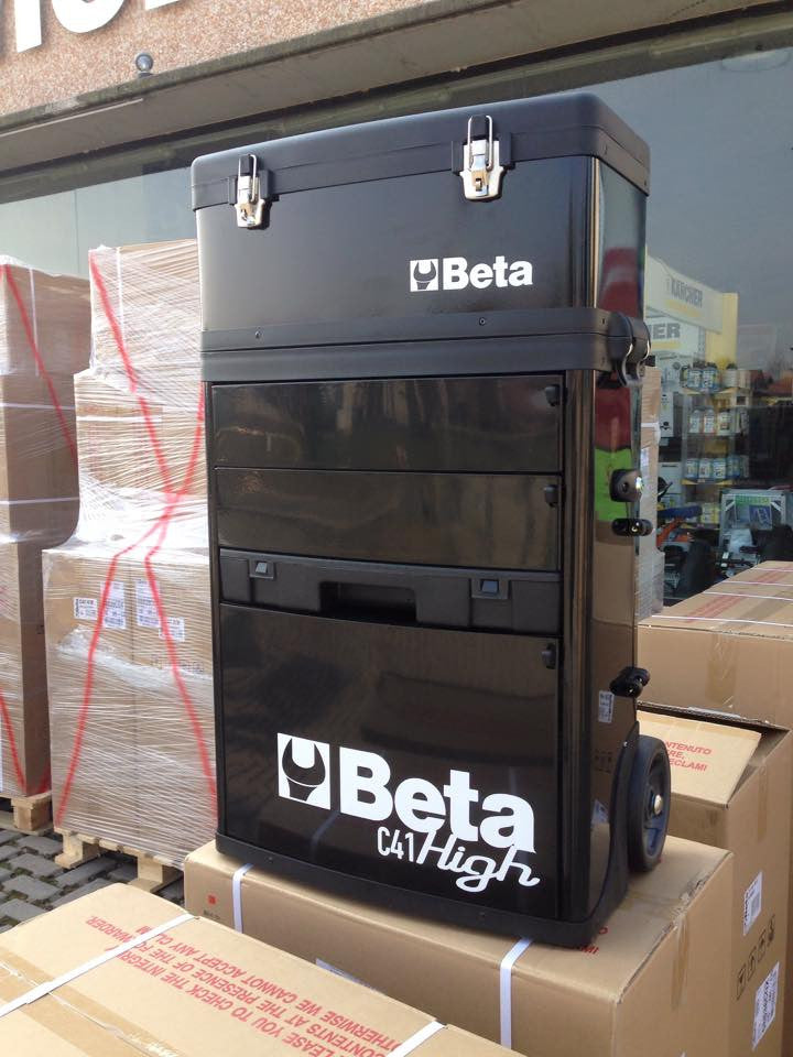 Professioneller Werkzeugtransport! Der Beta C41H Trolley mit 2 stapelbaren Modulen ist dein bester Helfer in Werkstatt und Garage. Große 160mm Räder für leichten Transport, sogar über Stufen. Mit Teleskopgriff und Zentralverriegelung. Enthält Oberkorb, Schubladen und ausziehbare Kassette. Aus robustem Blech/Kunststoff, Maße 536x250x920mm. Made in Italy - Qualität die überzeugt. Perfektes Geschenk für jeden Heimwerker!