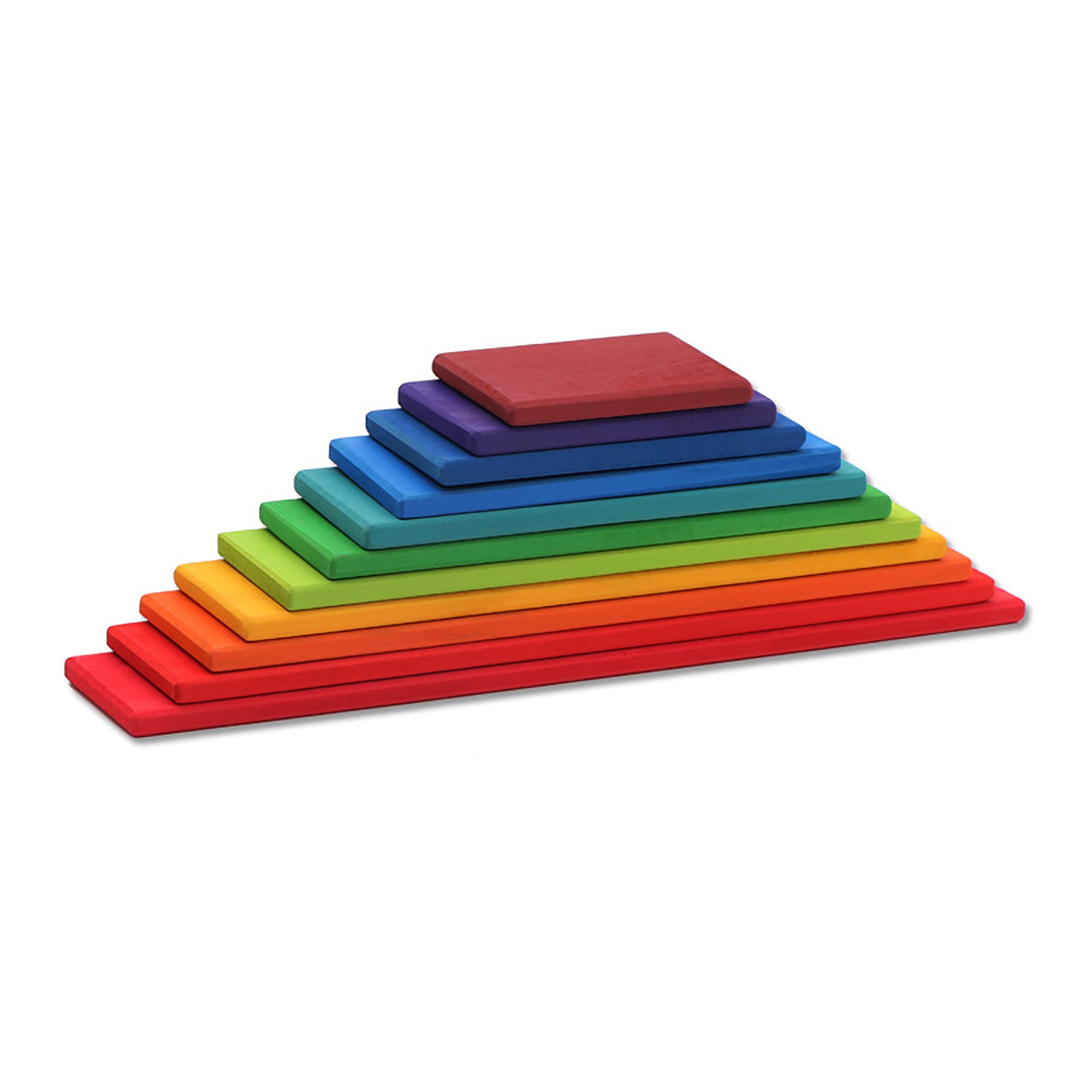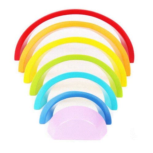Wow, dieser Regenbogen aus Holz ist einfach zauberhaft! Mit den 10 bunten Bögen können deine Kleinen nicht nur toll stapeln und bauen, sondern auch ihrer Fantasie freien Lauf lassen. Die Bögen lassen sich sowohl zum klassischen Regenbogen stapeln als auch zu einem langen Tunnel aneinanderreihen - da gibt's stundenlangen Spielspaß!\\n\\nDas Beste: Die Blöcke sind aus 100% ungiftigem Gummiholz gefertigt und mit umweltfreundlicher Wasserfarbe lackiert. Alle Kanten sind sorgfältig abgeschliffen, damit sich dein Kind nicht verletzt. Perfekt für Kinder ab 1 Jahr, um spielerisch die Hand-Auge-Koordination zu verbessern und motorische Fähigkeiten zu trainieren.\\n\\nMaße: ca. 18,5 x 3,5 x 7 cm\\nGewicht: 358g\\nMaterial: Naturholz\\nFarben: 10 verschiedene Farben\\n\\nOb als Geschenk, für die Spielzeugkiste oder als bunte Deko - dieses Holzspielzeug begeistert Groß und Klein! Nach dem Auspacken einfach 10 Minuten lüften lassen, dann kann der Spielspaß beginnen.