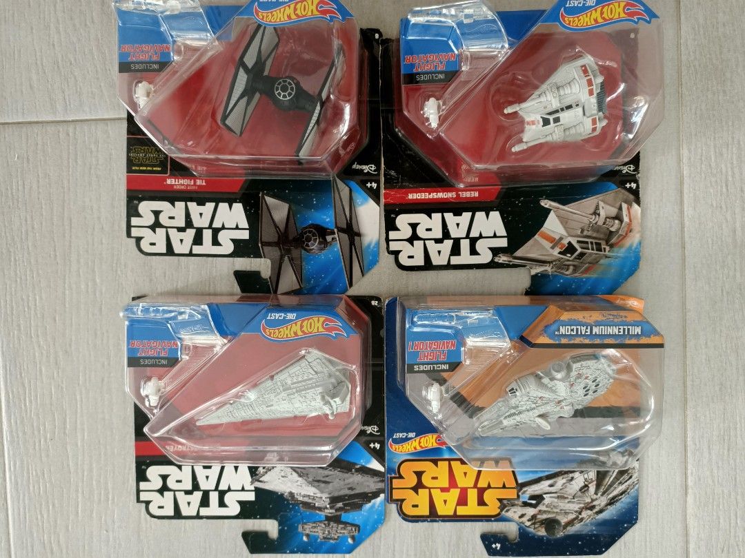 Ab in die Galaxie! Dieses Hot Wheels Star Wars 4er Pack bringt die legendärsten Raumschiffe direkt in dein Kinderzimmer. Im Helden-Pack findest du den Millennium Falcon, T-47 Luftgleiter, Geist und Jedi-Starfighter. Die Schurken-Seite hat Tie-Sternenjäger, Sklave I, Kommandoshuttle und Droiden-Sternenjäger im Angebot. Die coolen Flugnavigatoren kannst du dir auf den Finger stecken und die Schiffe damit durch die Luft fliegen lassen - wie im Hyperspace! Oder du stellst sie als Sammlung aus - sieht super aus im Regal. Aus robustem Druckguss gefertigt, halten die Schiffe auch wildeste Raum-Schlachten aus. Perfekt für kleine Star Wars Fans ab 4 Jahren und Sammler jeden Alters. Mach die Kraft mit dir - und mit diesen coolen Raumschiffen!