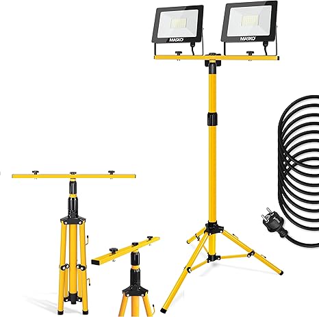 Richtig viel Licht für deine Projekte! Dieses Eikuavons Set enthält zwei LED Baustrahler mit je 50W und einem höhenverstellbaren Stativ. Jeder Strahler liefert 4250 Lumen in kaltweißem Licht (6500K) - so hell wie mehrere herkömmliche Glühbirnen! Das Stativ geht von 60 cm bis 170 cm Höhe - perfekt für jede Arbeitssituation. Die Strahlerköpfe sind um 180° neigbar und 360° drehbar - du kannst das Licht genau dorthin richten, wo du es brauchst. Mit IP66 Schutz sind die Strahler staub- und spritzwassergeschützt - also perfekt für innen und außen. Das 3 Meter lange Kabel mit EU-Stecker gibt dir genug Spielraum. Ob auf der Baustelle, in der Werkstatt, Garage oder im Garten - mit diesem Set hast du immer perfektes Licht. Einfach aufstellen, einschalten und sich über helle Verhältnisse freuen!