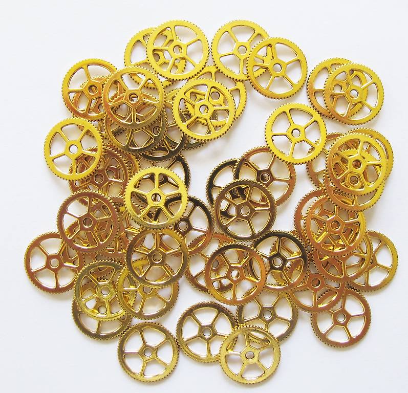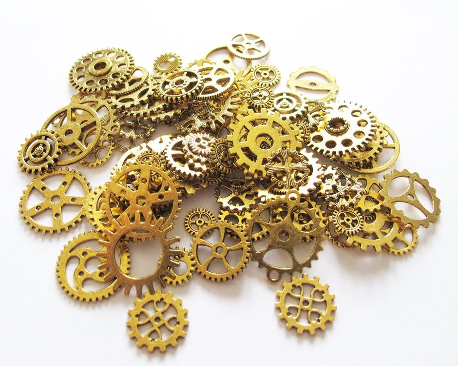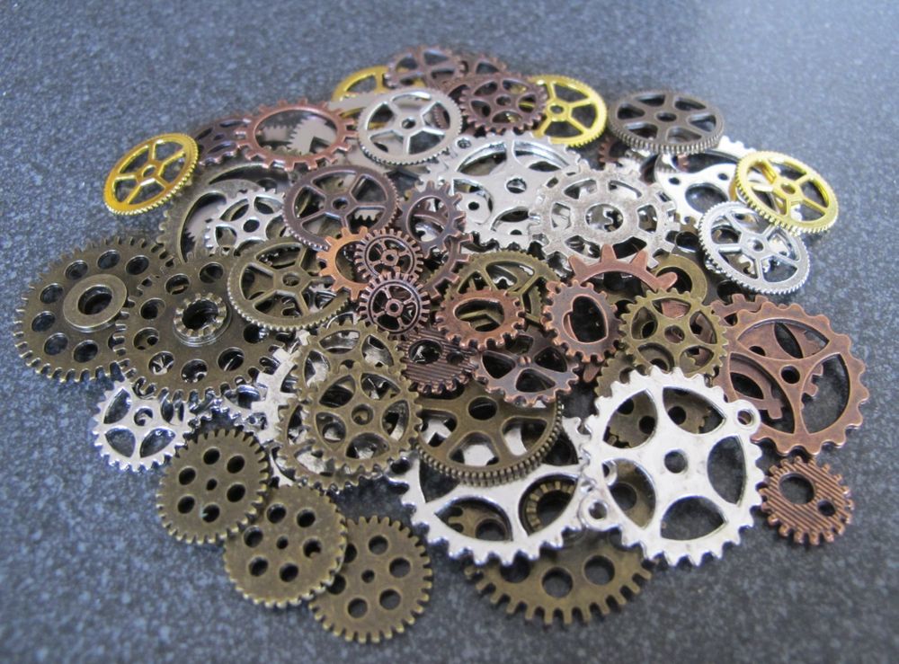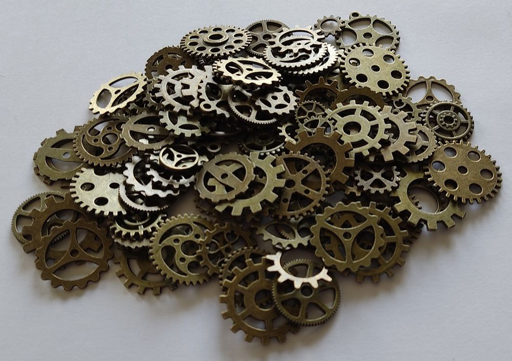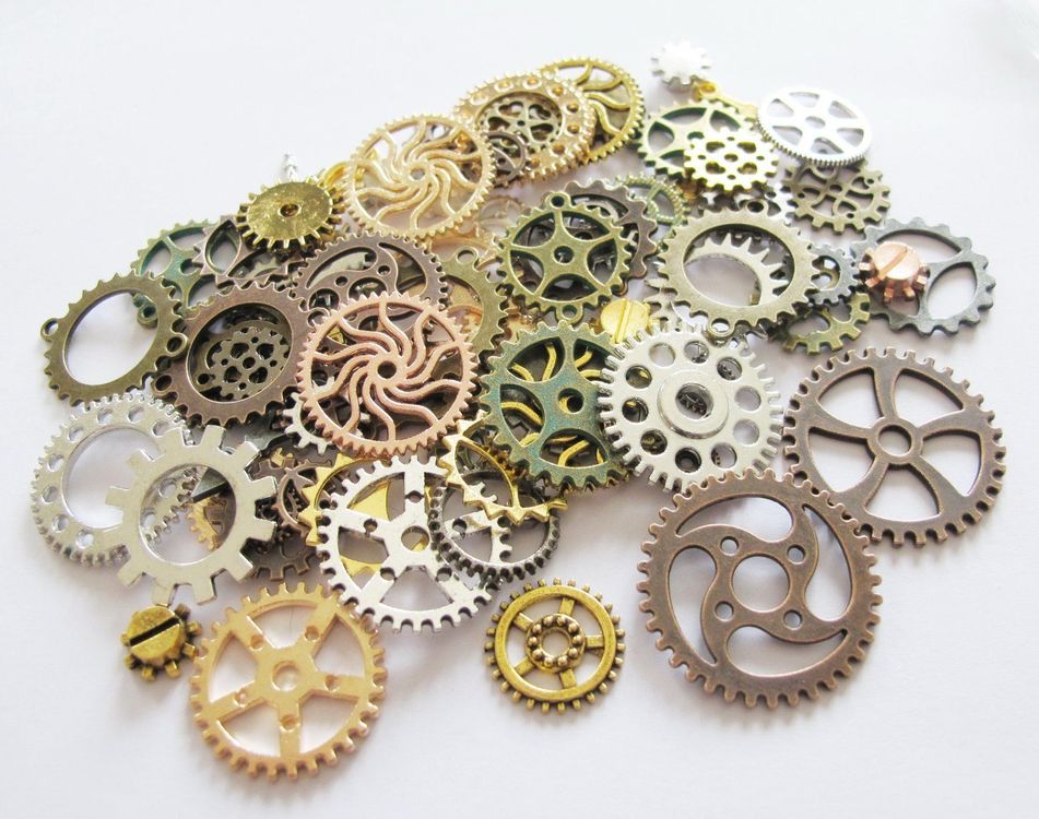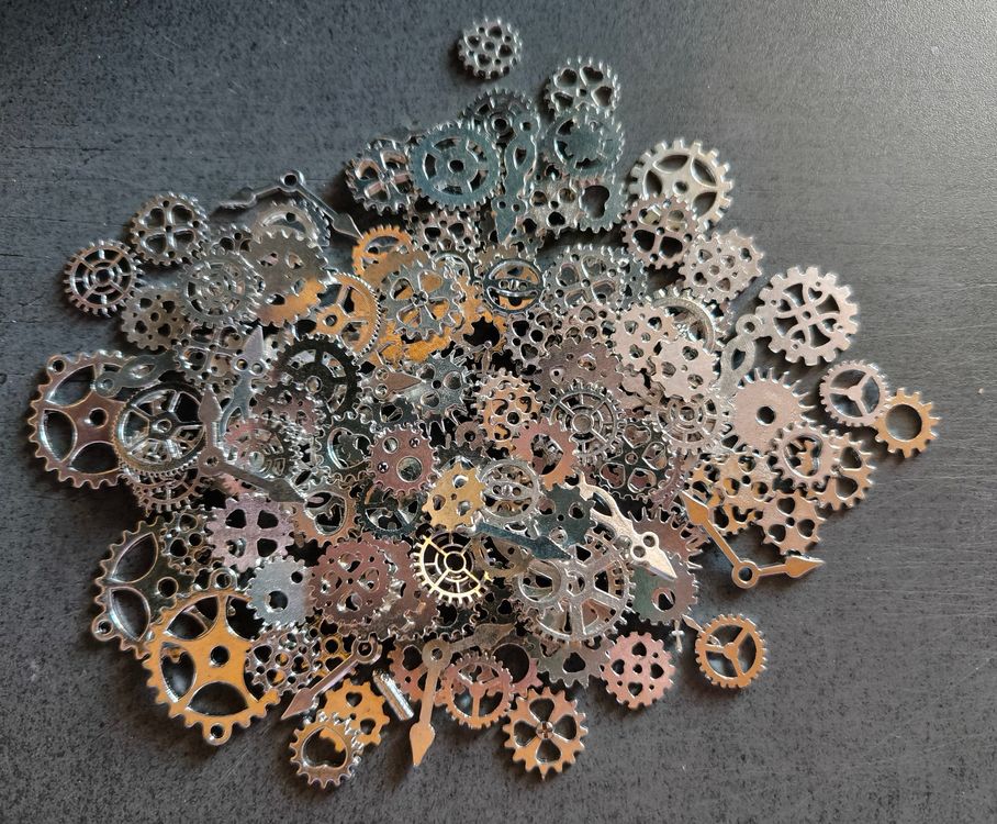 Für alle Steampunk-Fans und Kreativen! Dieses mega Set mit etwa 70 Zahnrädern aus Zinklegierung ist genau das Richtige für deine Bastelprojekte. Die Zahnräder gibt's in verschiedenen Größen von 1,3-3cm und in unterschiedlichen Farben und Designs - nicht nur klassische Zahnräder, sondern auch mit Totenköpfen, Uhren, Schlüsseln und anderen coolen Motiven. Perfekt um damit Schmuck wie Halsketten, Armbänder oder Ohrringe zu gestalten, oder um damit Deko für Zuhause zu basteln. Die kleinen Teile haften super auf Stoff, Holz, Leder, Glas - eigentlich auf fast allem! Ob für Halloween-Deko, Hochzeiten im Vintage-Stil oder einfach nur so - mit diesem Set kannst du deiner Kreativität freien Lauf lassen. Das 100g-Paket ist randvoll mit den kleinen Schätzen. Einfach auspacken und losbasteln - deine einzigartigen Kreationen warten schon darauf, gemacht zu werden!