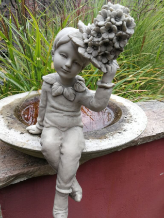 Oh, wie niedlich ist denn diese Blumenkind Figur! Der kleine Stechapfel-Kantensitzer ist die perfekte Deko für deinen Garten, Balkon oder Terrasse. Aus witterungsbeständigem Resin gefertigt hält die Figur Wind und Wetter stand ohne gleich zu verblassen. Mit den Maßen 28x10x14,5 cm ist sie genau die richtige Größe um auf Kanten von Beeten, Mauern oder Blumentöpfen Platz zu nehmen. Die seidenmatt graue Farbe wirkt dezent und elegant und passt zu jeder Gartengestaltung. Diese süße Zauberblume bringt sofort magische Stimmung in dein grünes Reich! Die Verarbeitung ist sauber und die Details sind liebevoll ausgearbeitet. Einfach hinsetzen und freuen - mehr Aufwand braucht's nicht! Ob zwischen Blumen, am Gartenteich oder auf der Terrasse - dieses Blumenkind wird zum echten Hingucker! Perfekt für alle, die ihrem Garten etwas verspieltes Flair verleihen wollen!
