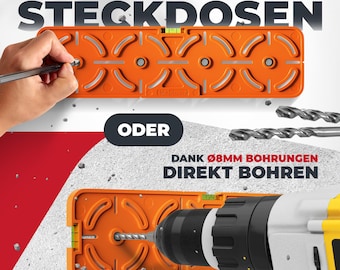 Professionelle Bohrschablone von MaKoen - jetzt geht das Setzen von Steckdosen kinderleicht! Mit exakten 71mm Bohrungen nach DIN-Norm für Hohlwand- und Unterputzdosen. Die integrierte Wasserwaage mit zwei großen Libellen sorgt für perfekte Ausrichtung - waagerecht oder senkrecht, ganz ohne zusätzliches Werkzeug. Hochwertige 6mm Stahlhülsen, gehärtet und verzinkt, garantieren präzise Bohrergebnisse. Einfach anzeichnen, bohren, fertig - so sparst du Zeit und Ärger. Robust konstruiert für langlebigen Einsatz im Elektrohandwerk und für Heimwerker. Quality Made in Germany - da stimmt einfach die Qualität. Universell geeignet für alle gängigen Unterputzdosen. Nie wieder schiefe Steckdosen! Perfekt für Renovierung oder Neubau. Mit dieser Schablone wird jeder zum Profi. Einfach das beste Werkzeug für präzise Elektroinstallationen!