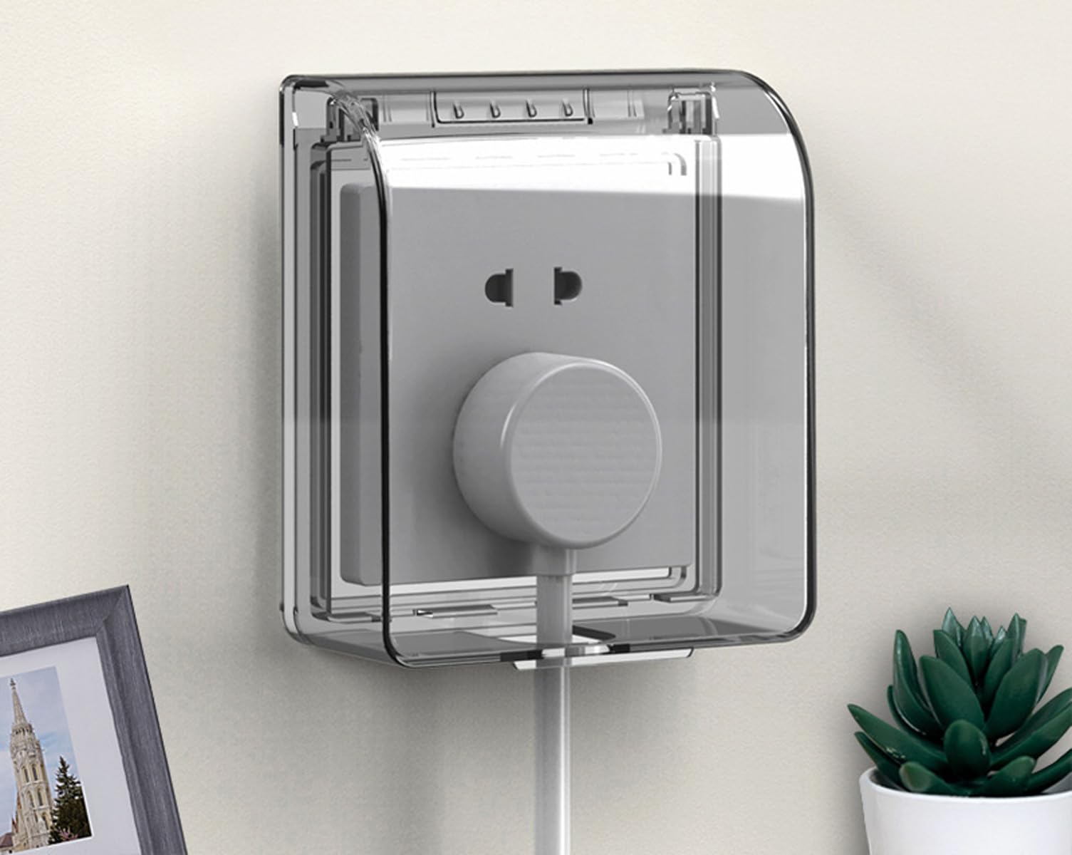Mach deine Steckdosen endlich wassersicher! Diese praktische Abdeckung von Alipis schützt zuverlässig vor Spritzwasser - ob in Bad, Küche oder draußen an der Hauswand. Die weiße Abdeckung aus robustem Kunststoff ist super einfach zu montieren: Einfach aufkleben und fertig! Kein Bohren, kein Schrauben, kein Stress. Der große Öffnungswinkel ist genial - du kannst problemlos Stecker ein- und ausstöpseln, ohne die Abdeckung abnehmen zu müssen. Perfekt für Bereiche, wo's mal nass werden kann: Neben dem Waschbecken, über der Spüle, in der Garage oder auf dem Balkon. Die Abdeckung ist wetterfest und hält auch outdoor was aus. Sie schützt nicht nur vor Wasser, sondern auch vor Staub und anderen Einflüssen. Deine elektrischen Geräte sind so viel sicherer vor Kurzschlüssen! Und wenn du mal umziehst, lässt sich die Abdeckung rückstandslos entfernen. Einfach reinigen, trocknen und an ner neuen Stelle wieder anbringen. So einfach kann Sicherheit sein - und deine Steckdosen sehen auch noch ordentlicher aus!