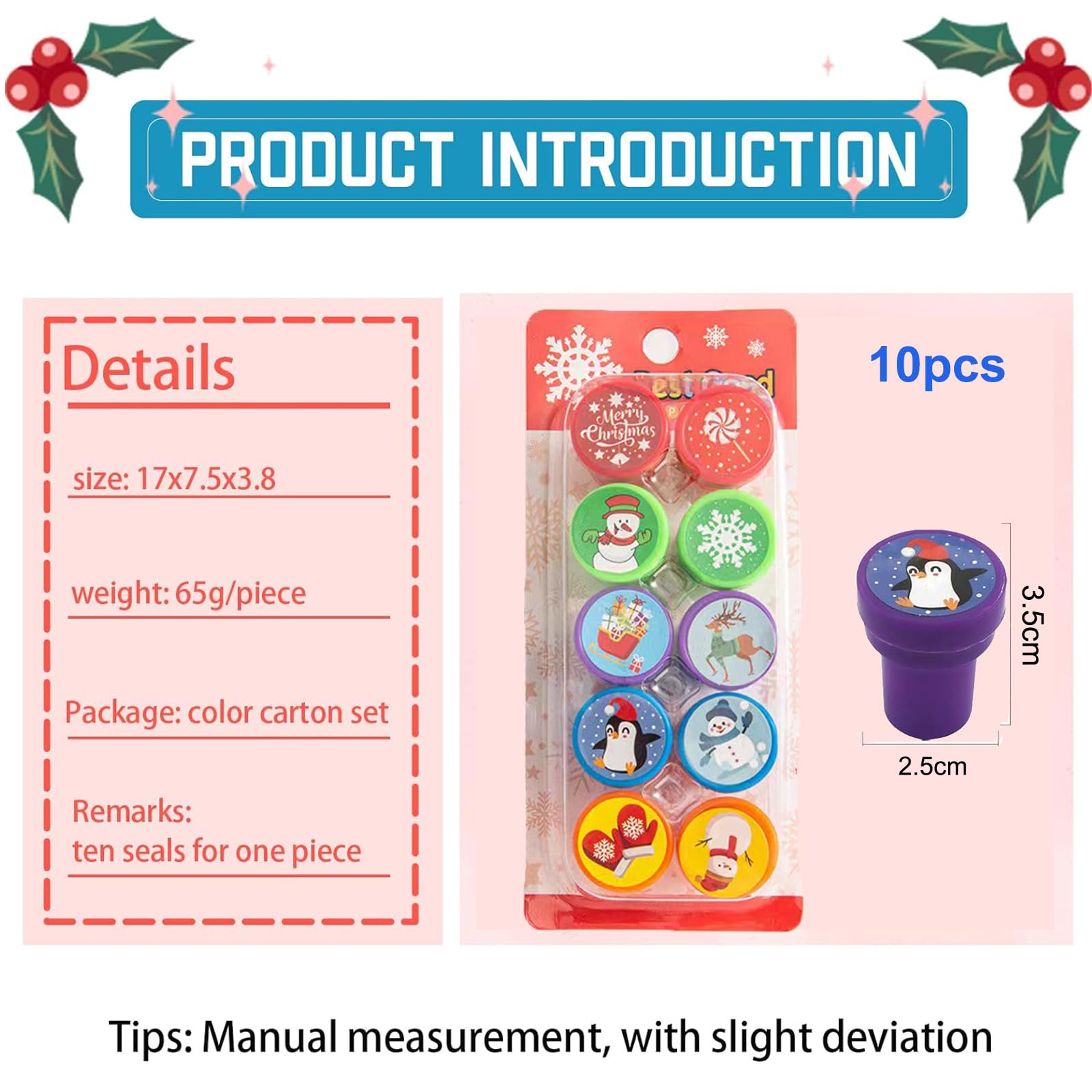 Weihnachtlicher Bastelspaß für die Kleinen! Dieses PTBWS Stempelset mit 10 verschiedenen Weihnachtsmotiven bringt Freude in die Vorweihnachtszeit. Selbstfärbend - keine zusätzliche Stempelkante nötig! Einfach leicht drücken und schon erscheint das bunte Motiv. Aus ungiftigem PP-Material und sicherer Tinte - absolut kindergeeignet. Perfekt für Weihnachtskarten, Geschenkanhänger, Scrapbooking oder einfach zum Spielen. Die süßen Motive begeistern jedes Kind - von Weihnachtsmännern über Sterne bis zu Schneeflocken. Ideal als Mitgebsel für Weihnachtspartys, für den Kindergarten oder als Geschenk. Aber Achtung: Immer unter Aufsicht von Erwachsenen benutzen! Macht die Weihnachtszeit noch magischer!