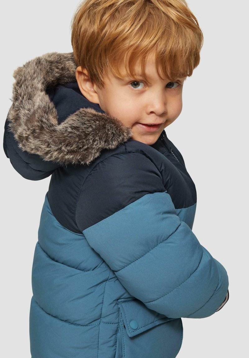 Dein Junge wird diesen s.Oliver Steppmantel lieben! Perfekt für kalte Tage, hält er schön warm und sieht dabei super aus. Die feste Kapuze schützt vor Wind und Wetter, und der Stehkragen gibt extra Wärme. Mit Loose Fit sitzt die Jacke bequem und nicht zu eng - ideal zum Spielen und Toben! Das Fleecefutter innen fühlt sich super weich an, und das Taft-Futter sorgt für zusätzlichen Komfort. Praktische Leistentaschen bieten Platz für kleine Schätze, und der verdeckte Reißverschluss sieht nicht nur gut aus, sondern ist auch funktional. Mit einem dezenten Logo-Print ist die Jacke stylisch ohne aufdringlich zu sein. Ob für den Schulweg, zum Spielen oder für Ausflüge - dieser Mantel ist der perfekte Begleiter für den Winter!
