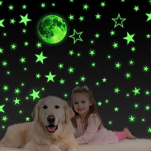 Verwandle dein Zimmer in einen magischen Sternenhimmel! Diese leuchtenden Sterne und Mond-Aufkleber leuchten nachts in gelb-grün, nachdem sie tagsüber Licht gesammelt haben. Set mit 167 Teilen: 1 großer Stern (5,1 Zoll), 2 ausgehöhlte Sterne, 4 mittlere Sterne, 94 kleine Sterne (1,4 Zoll) und 1 großer Mond (10,4 Zoll). Aus umweltfreundlichem PVC-Material. Einfach anzubringen und rückstandslos zu entfernen. Leuchtet 4-6 Stunden nach 30 Minuten Licht. Perfekt für Kinderzimmer, Schlafzimmer oder als Nachtlicht-Ersatz. Zauberhafte Atmosphäre garantiert!
