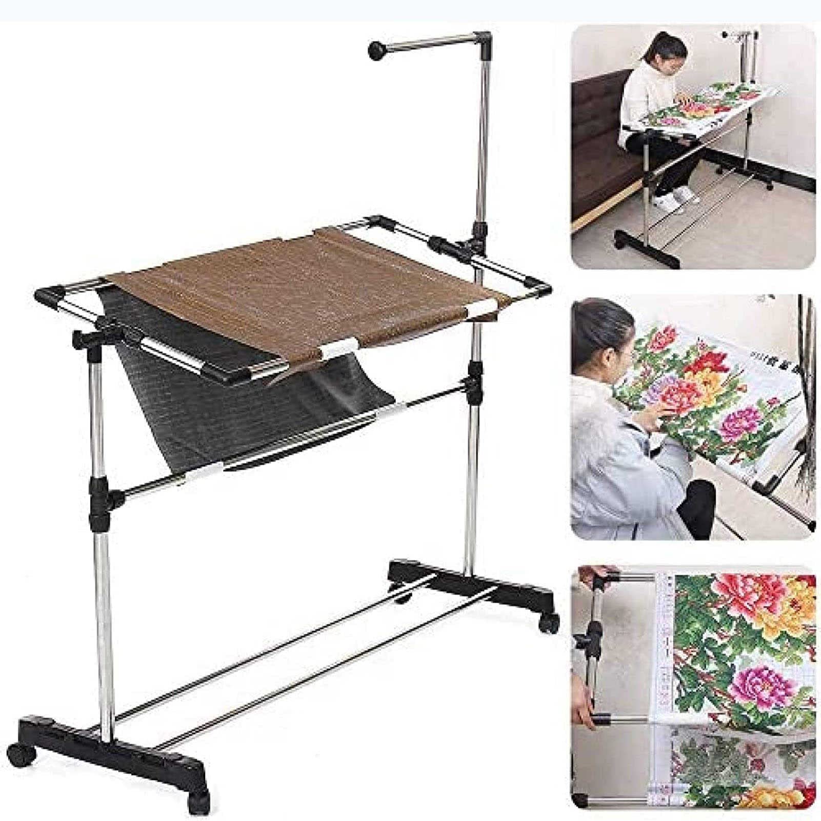 Endlich beide Hände frei zum Sticken! Dieser super praktische Stickrahmen mit Ständer macht deine Handarbeiten so viel einfacher. Du musst den Rahmen nicht mehr festhalten und kannst dich voll auf dein Kreuzstich-Projekt konzentrieren. Der Ständer ist höhenverstellbar und lässt sich um 360 Grad drehen - so findest du immer die perfekte Arbeitsposition. Mit dabei ist ein richtig cooles Zubehör-Set: Werkzeugkorb, Edelstahlklammern, wasserlöslicher Stift, Fadenentferner, Sticknadeln und sogar eine kleine Schere. Die Räder an der Unterseite machen ihn mobil, und mit der Bremse steht er bombenfest. Perfekt für Kreuzstich, Stickerei, Perlenarbeiten und andere Handarbeiten. Einfach aufbauen und loslegen - deine kreativen Projekte warten!