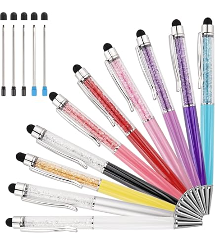 Schick schreiben war noch nie so glamourös! Diese 5 Diamant-Stifte im Set sind sowohl Kugelschreiber als auch Touchpen für Tablets und Smartphones. Aus Metall gefertigt und mit funkelnden Kristallen verziert - das ist Schreibwaren der Extraklasse! Mit 14,5cm Länge liegen sie perfekt in der Hand. Die 0,7mm Mine schreibt super smooth mit schwarzer Tinte (nachfüllbar!). Auf der anderen Seite der Touchpen für alle kapazitiven Bildschirme. Perfekt fürs Büro, die Schule, Uni oder einfach für zu Hause. Sie sehen nicht nur mega stylisch aus, sondern sind auch richtig praktisch. Super als Geschenk für Freundinnen, Kollegen oder die Chefin - wer freut sich nicht über so einen funkelnden Stift? Die Verarbeitung ist hochwertig, die Diamanten sitzen fest und glitzern um die Wette. Einfach in die Handtasche stecken und immer griffbereit haben. Ob für Meeting-Notizen, Einkaufszettel oder zum Doodlen - mit diesen Stiften macht alles mehr Spaß. Das Set mit 5 Stiften ist perfekt, um sie an verschiedene Orte zu verteilen oder weiterzuverschenken. Glamour meets Funktion!