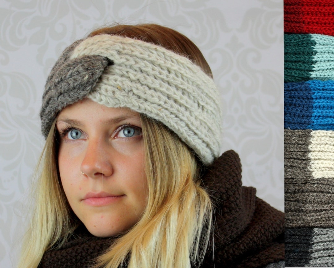 • Geflochtenes Woll-Stirnband - Ohrenwärmer Handgestrickt