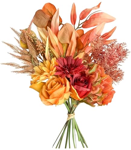 Herbstliche Atmosphäre das ganze Jahr! Dieses DBALL Set enthält 2 wunderschöne künstliche Herbststräuße. Jeder Strauß besteht aus 5 Sonnenblumenköpfen, 4 Paar Ahornblättern und 4 simulierten Pflanzen mit Zweigen. Ca. 35cm hoch - perfekt für Vasen oder Dekoration. Aus hochwertigem Stoff, Kunststoff und Metall gefertigt. Die Farben sind lichtecht und geruchsfrei - kein Verblassen! Die verschiedenen Elemente lassen sich frei kombinieren für individuelle Arrangements. Ideal für herbstliche Tischdekorationen, Halloween-Partys, Hochzeiten im Herbstlook oder gemütliche Wohnzimmer-Deko. Einfach in eine Vase stellen oder als Tischcenter verwenden. Tipp: Beim Transport können Blüten etwas gequetscht werden - einfach vorsichtig entfalten. So holen Sie sich den goldenen Herbst ins Haus - ohne dass die Blumen welken. Perfekt für alle, die sich die Schönheit des Herbstes bewahren wollen. Dekorieren Sie jetzt mit diesen charmanten Herbststräußen!