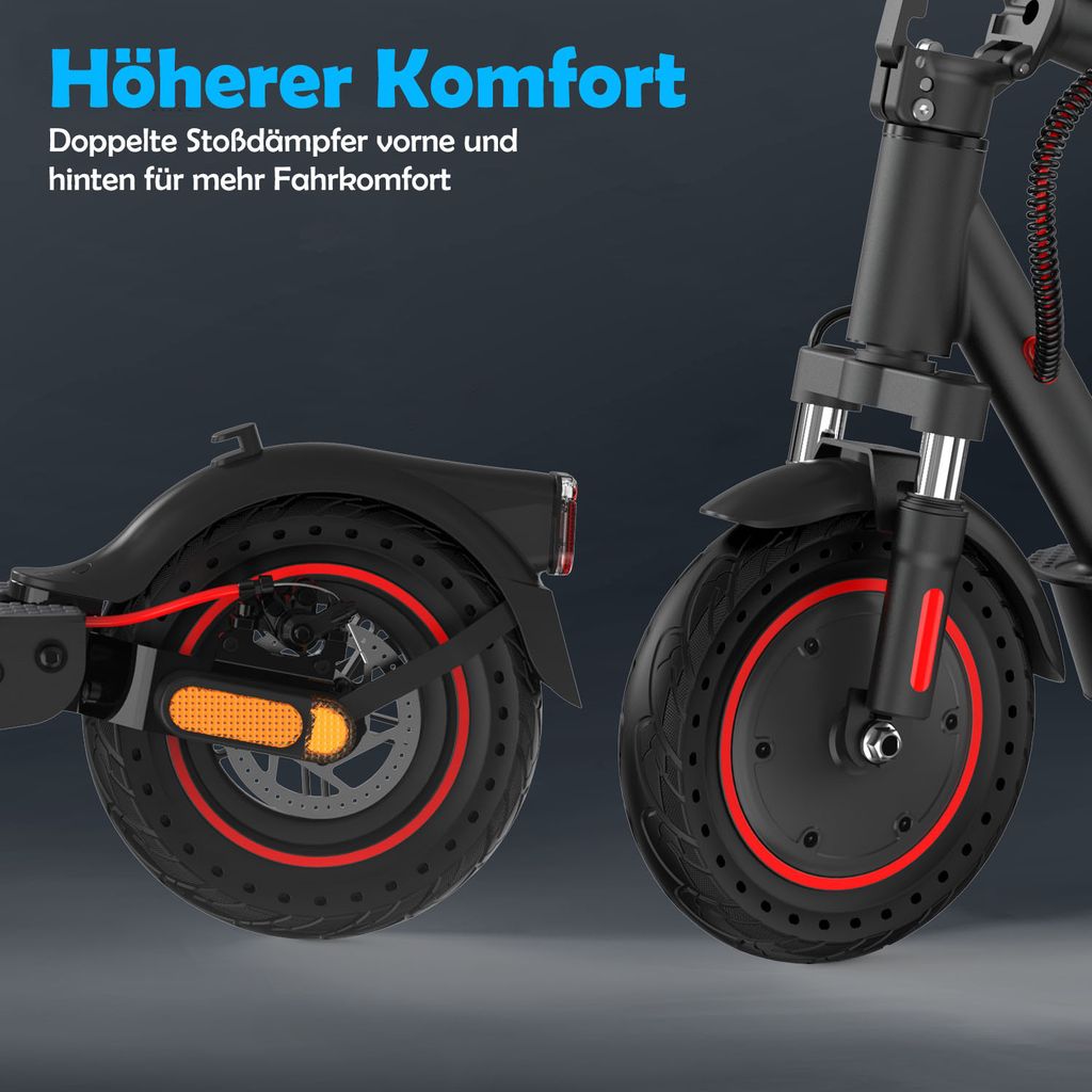 Moin Urban Rider! Der ASKGO Q2 E-Scooter ist dein neuer bester Freund in der Stadt - mit offizieller Straßenzulassung! Reichweite: 40-45 km - damit kommst du easy durch den Tag. Mit starkem 800W Nabenmotor und 48V 15AH Akku - Power pur! Max. Traglast 120 kg, Steigungswinkel über 20° - auch für bergige Strecken geeignet. Top Speed ca. 20 km/h - perfekt für den Stadtverkehr. Die 10 Zoll Offroad-Reifen sind pannensicher und bieten super Grip. Doppelbremssystem für maximale Sicherheit, selbst bei voller Geschwindigkeit. Doppelstoßdämpfer für ultra-comfortables Fahrgefühl - auch auf holprigen Straßen. Mit LCD-Display, LED-Scheinwerfer und Sicherheitsrücklicht - alles was du brauchst! Und praktisch: Zusammenklappbar für einfachen Transport in U-Bahn oder Auto. Einfach ausklappen, Zündschlüssel drehen und losdüsen! Perfekt für den Arbeitsweg, Einkäufe oder einfach nur zum Spaß haben. Hol dir die Freiheit auf zwei Rädern!