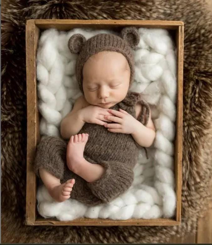 Süße Fotos garantiert mit diesem entzückenden Baby-Fotoshooting-Set! Enthält einen weichen Strampler und einen niedlichen Turban-Hut mit langem Schwanz - alles aus atmungsaktiver Wollmischung, superweich auf der Babyhaut. Perfekt für Neugeborene von 0-6 Monaten. Ob für Meilenstein-Fotos, Geburtstage oder einfach nur für niedliche Alltagsbilder - dieses Set macht jedes Baby zum Star. Verschiedene Farben zur Auswahl. Einfach an- und ausziehen, praktisch und bequem. Erstelle unvergessliche Erinnerungen mit diesen absolut niedlichen Fotorequisiten!