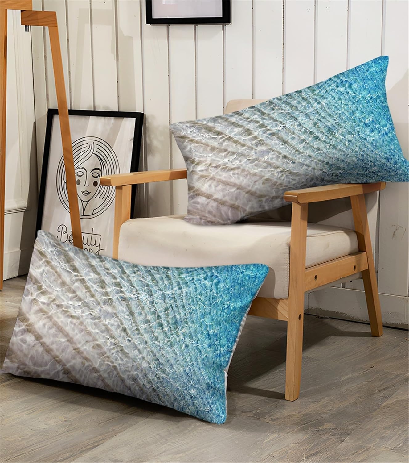 • Meer Spannbettlaken 160x200cm - 3D Strand Design Mit 2 Kissenbezügen