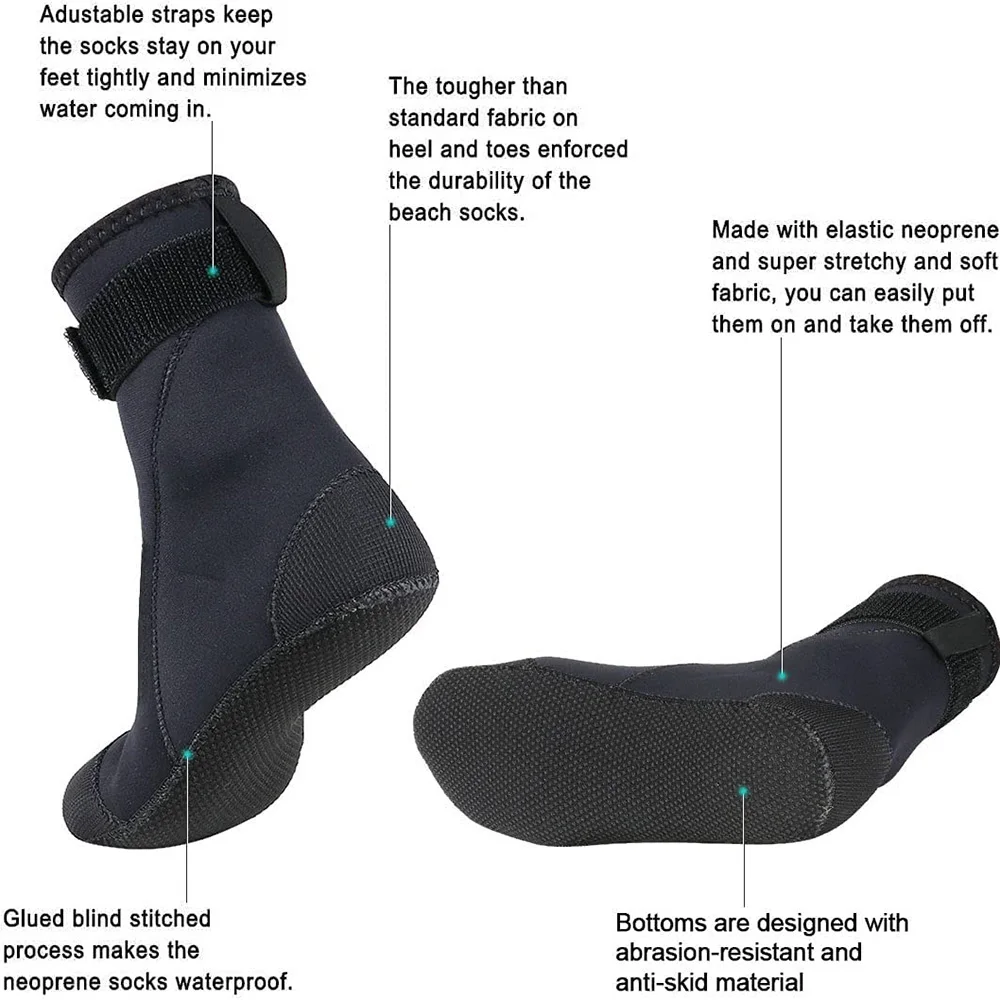 Hey, hast du genug von heißen Sand und scharfen Steinen am Strand? Diese Neoprensocken sind deine Rettung! Mit 3mm dickem Neopren halten sie deine Füße schön warm und schützen vor Korallen, Quallen und allem, was sonst noch so im Wasser lauert.