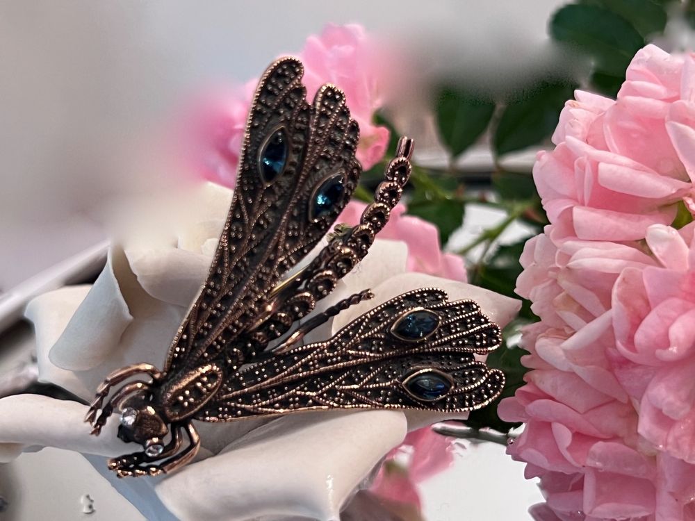 Diese bezaubernde Libellen-Brosche mit funkelnden Strasssteinen ist ein echter Hingucker! Im Vintage-Design mit blauen Kristallen verleiht sie jedem Outfit einen Hauch von Eleganz. Mit 6x4,8cm Größe ist sie dezent aber ausdrucksstark. Aus hochwertiger Legierung gefertigt, verblasst nicht und liegt angenehm auf der Kleidung. Perfekt für Blazer, Kleider, Pullover, Schals oder Hüte. Das Libellen-Motiv symbolisiert Veränderung und Freiheit - ein wunderbares Geschenk für besondere Anlässe wie Geburtstage, Hochzeiten oder Jubiläen. Ob im Büro, auf der Party oder im Alltag - diese Brosche setzt modische Akzente. Wird im OPP-Beutel geliefert. Verschenke Eleganz und Stil!