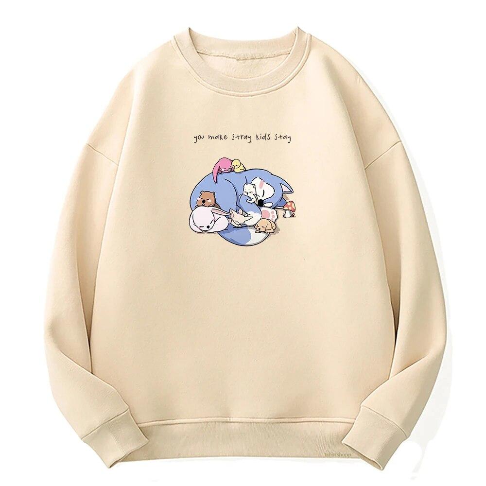 Achtung, alle STAYs! Dieser offizielle Stray Kids SKZoo Hoodie ist ein absolutes Must-Have für echte Fans. Mit den niedlichen SKZoo Charakteren zeigst du deine Liebe zur Band - stylisch und comfortable zugleich. Aus weichem, atmungsaktivem Material fühlt sich der Pullover an wie eine Umarmung - perfekt für Konzerte, Alltag oder gemütliche Filmabende. Der Unisex-Schnitt passt sowohl Frauen als auch Männern und der Oversize-Look ist total im Trend. Ob zu Jeans, Leggings oder Jogginghose - dieser Hoodie macht jedes Outfit sofort KPOP-tauglich. Die Kapuze ist schön groß und die Taschen praktisch für Handy und Snacks. Perfekt als Geburtstagsgeschenk für beste Freundinnen, als Weihnachtsüberraschung oder einfach zum Selbstbehalten - weil man sich selbst ja auch mal was gönnen darf. Die Druckqualität ist top und hält auch nach häufigem Waschen. Zeig der Welt, dass du zur STAY-Familie gehörst - mit diesem niedlichen SKZoo Design, das garantiert für Komplimente sorgt. Einfach anziehen, Musik anmachen und in die Welt von Stray Kids eintauchen!