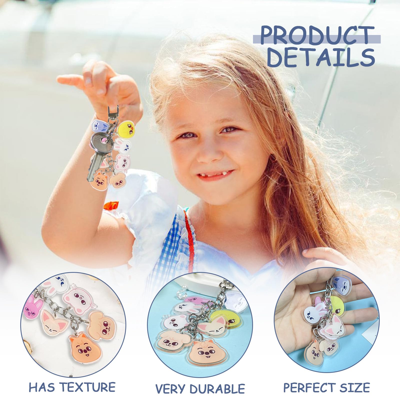 Für alle Stray Kids Fans - dieser Schlüsselanhänger ist ein Muss! 13cm groß aus hochwertigem Acryl mit verschiedenen Charakter-Designs. Mit Metall-Aufhängering für Schlüssel, Rucksack oder Handy. Die Details sind super klar und farbecht gedruckt. Perfekt als Geschenk für Fans oder zum Sammeln. Langlebig und stabil - hält auch im täglichen Gebrauch. Ob für Konzerte, Treffen mit anderen Fans oder einfach nur zum Zeigen der Unterstützung - ein tolles Accessoire für echte Stays!