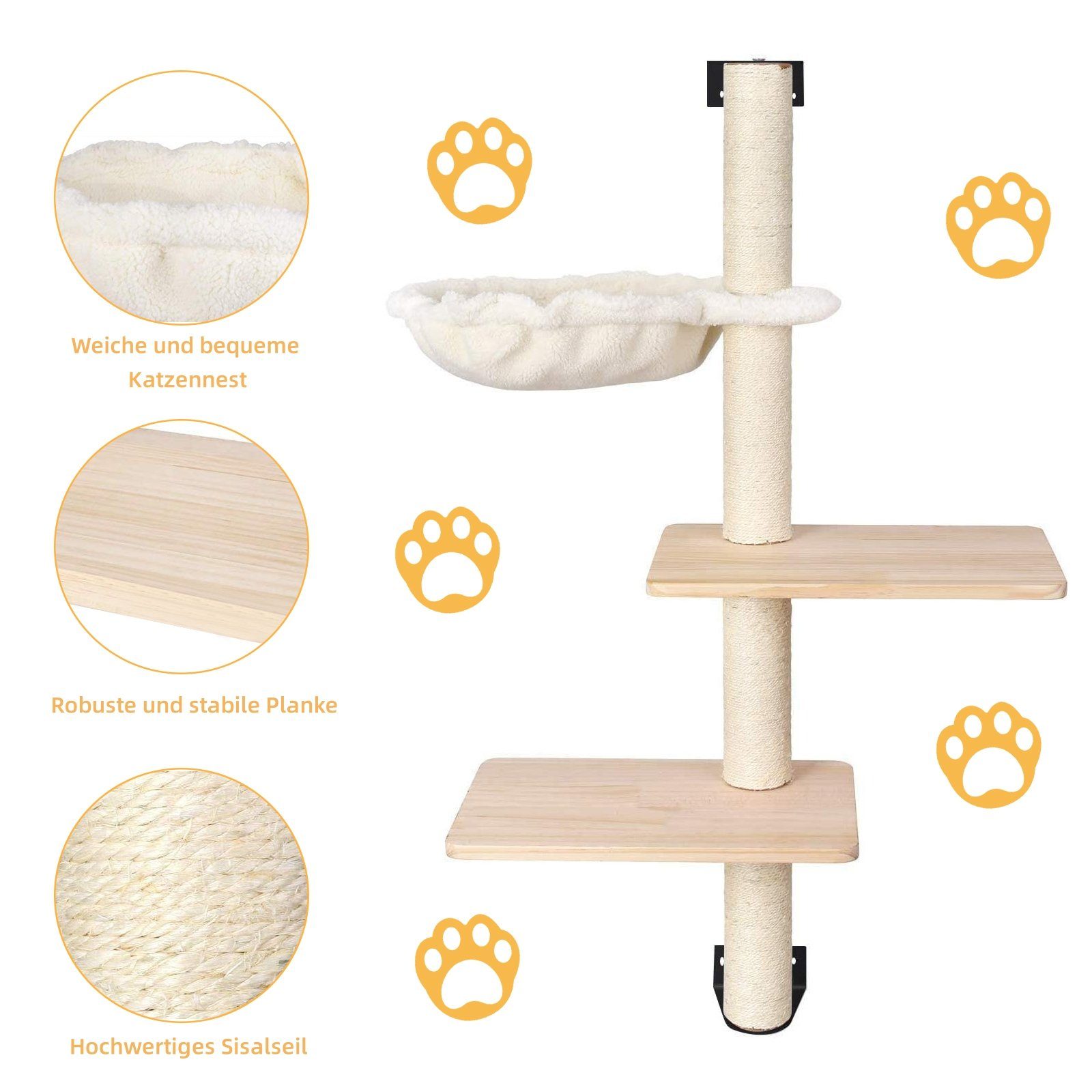 Miau! Deine Katze kratzt an den Möbeln? Diese Katzenwand-Stufe von JISADER ist die Lösung! Der coole Kratzbaum wird einfach mit Saugnäpfen an der Wand befestigt - komplett ohne Bohren! Perfekt für alle, die keine Löcher in die Wand machen wollen. Die Stufe ist aus massivem Holz und hat eine robuste Baumwollseil-Umwicklung, die den Kratzinstinkt deiner Katze perfekt befriedigt. Mit 24 cm Länge und 8 cm Höhe ist sie kompakt und passt in jede Wohnung. Einfach die glatte Oberfläche sauber machen, Saugnäpfe festdrücken - und schon kann deine Katze loskratzen! Die Stufe ist super fürs Strecken, Kratzen, Springen, Klettern, Sitzen und Ausruhen. So schützt du deine Möbel und bietest deiner Katze gleichzeitig einen tollen Kratzplatz. Die Montage dauert nur Sekunden und wenn du umziehst oder die Position ändern willst, lässt sich die Stufe rückstandslos entfernen. Egal ob Kätzchen oder erwachsene Katze - alle werden diesen Kratzbaum lieben! Endlich mehr Spaß für deine Katze und weniger Kratzspuren an deinen Möbeln. Das Paket enthält eine Katzenwand-Stufe, sofort einsatzbereit!