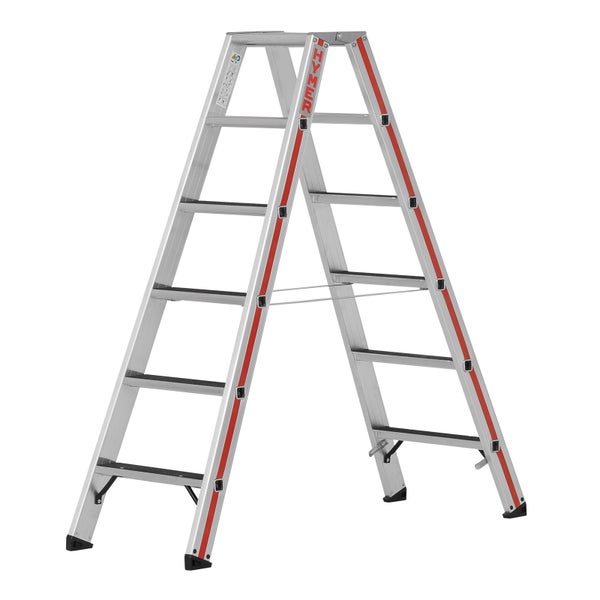 Sicherheit steht an erster Stelle! Die Hymer Stufenstehleiter mit 2x6 Stufen gibt dir bei allen Heimwerker-Projekten den nötigen Halt. Das clevere D-Holm-Konzept macht die Leiter extrem stabil und verwindungssteif - da fühlst du dich sicher auch in höheren Positionen. Besonders praktisch: Die Leiter ist beidseitig begehbar, sodass du nicht ständig umsteigen musst. Die 80 mm tiefen Stufen bieten guten Stand, und die Spreizsicherung mit 20 mm breiten Perlongurten verhindert ein unerwünschtes Auseinanderrutschen. Mit einer Standhöhe von 0,91 m und einer Arbeitshöhe bis 2,41 m erreichst du auch höhere Stellen problemlos. Die großen Leiterschuhe sorgen für festen Stand auf jedem Untergrund. Bei nur 8,1 kg Gewicht ist die Leiter noch gut zu tragen. Made in Germany-Qualität für den anspruchsvollen Heimwerker!