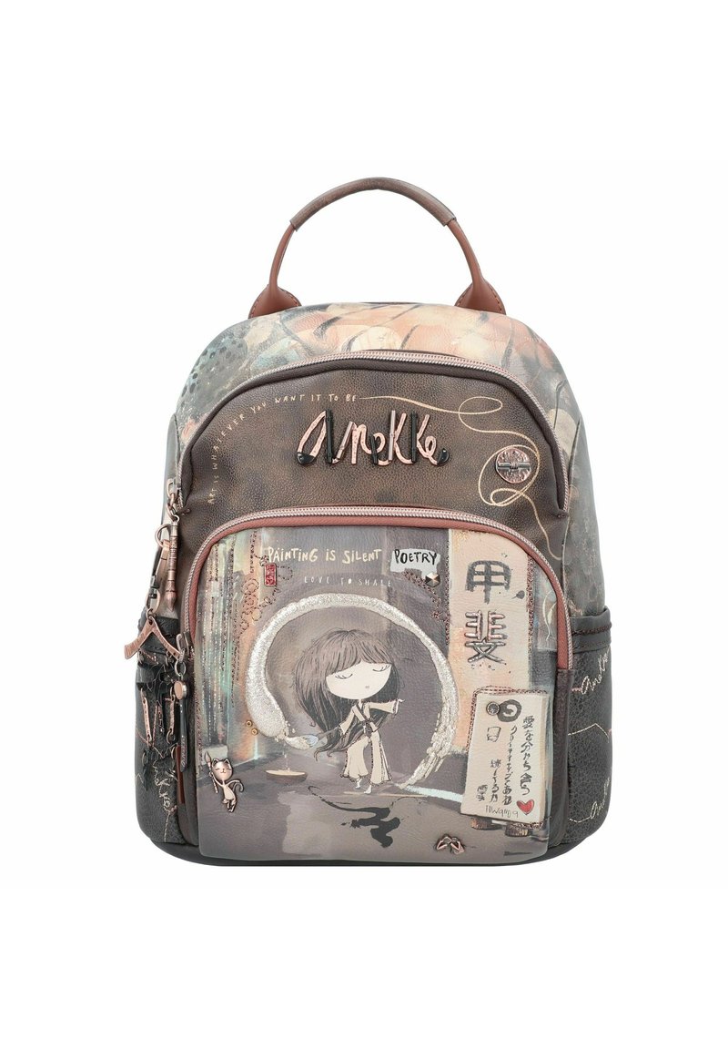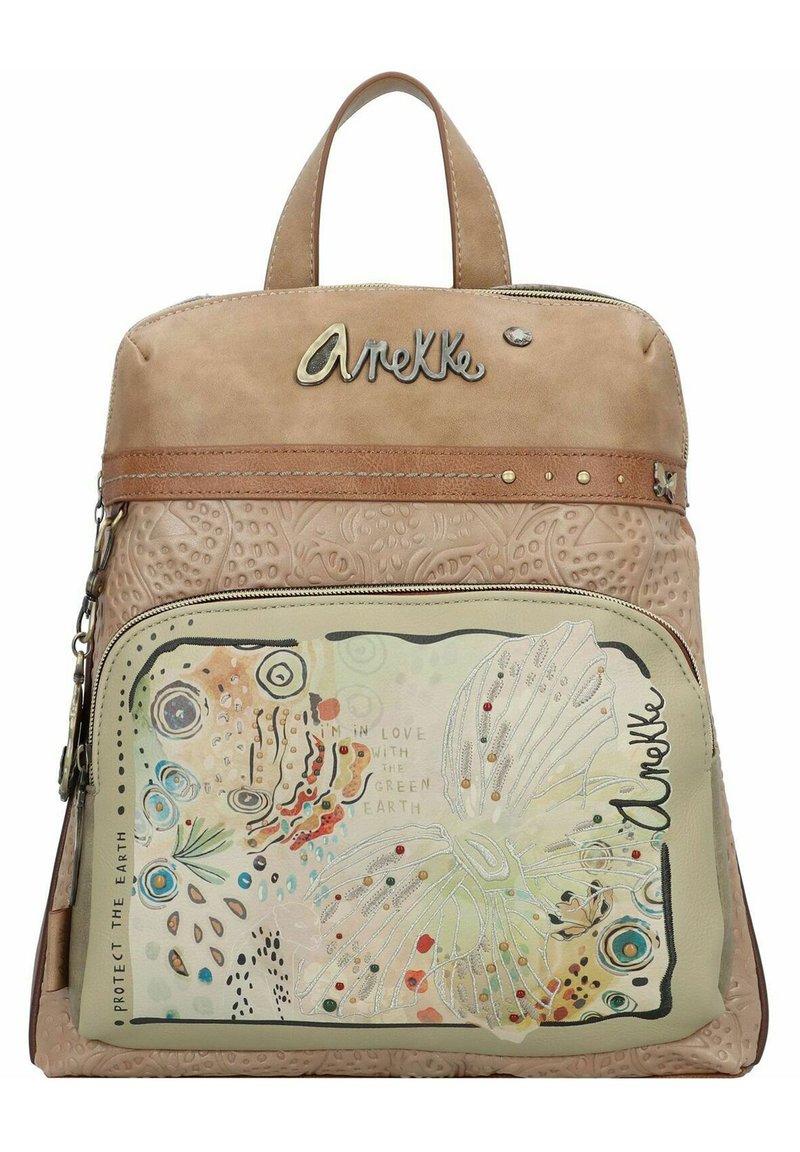 Dieser Anekke Rucksack ist nicht nur praktisch, sondern auch ein echter Hingucker! Mit seinen bunten Stickereien, Metalldetails und Schmucksteinchen ziehst du garantiert Blicke auf dich. Aber er kann auch was: Das geräumige Hauptfach (28x28x9 cm) bietet Platz für Bücher, Laptop und alles was du täglich brauchst. Mehrere Innenfächer, Steckfächer und ein separates Laptopfach helfen dir, Ordnung zu halten. Die gepolsterten Schultergurte und das atmungsaktive Rückenteil sorgen für Komfort, selbst wenn du den Rucksack den ganzen Tag trägst. Aus robustem, wasserabweisendem Material schützt er deine Sachen vor Regen. Perfekt für Schule, Arbeit oder Freizeit - und das Beste: Du kannst ihn auf beiden Seiten tragen, da Vorder- und Rückseite unterschiedlich designt sind!