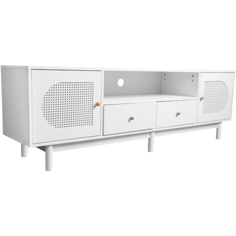 Boah, dieses TV Lowboard ist einfach der Hammer! Mit stolzen 180cm Länge bietet es genug Platz für deinen 80-Zoll Riesenfernseher. Das Besondere: Die zwei Rattan-Schubladen sehen nicht nur mega stylisch aus, sondern sind super praktisch für Fernbedienungen, DVDs und Kleinkram. Die beiden gebogenen Glastüren zeigen deine Technik-Geräte perfekt und schützen sie gleichzeitig vor Staub. Noch ein Highlight: Die integrierte LED-Beleuchtung mit 16 Farben! Damit kreierst du abends die perfekte Kino-Atmosphäre im Wohnzimmer. Acht Beine sorgen für absolute Stabilität - vier davon sind höhenverstellbar, sodass du den Schrank perfekt ausrichten kannst, auch wenn der Boden nicht ganz eben ist. Aus robusten Spanplatten gefertigt und trägt bis zu 40kg. Maße: 180x40x50cm (LxBxH). Kommt in zwei Paketen - bitte warte mit dem Aufbau, bis beide da sind! So ein Möbelstück wird definitiv zum Eyecatcher in deinem Wohnzimmer!