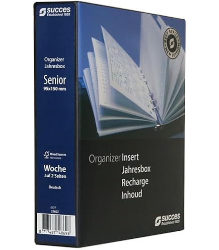 Alles im Griff mit diesem praktischen Organizer! Die Succes Jahresbox für 2026 im handlichen Senior-Format (9,5x15cm) ist dein perfekter Begleiter durchs ganze Jahr. Eine Woche auf zwei Seiten - so behältst du immer den Überblick über deine Termine. Enthalten sind Kalendereinlagen, Monatsblätter, Archivbox, Geburtstagskalender und viele nützliche Extras wie ToDo-Listen und Landkarten. Alles in weiß mit deutscher Beschriftung - übersichtlich und stylisch. Perfekt für die Handtasche oder Jackentasche - immer griffbereit wenn du ihn brauchst. Ob beruflich oder privat - mit diesem Organizer vergisst du keinen Termin mehr! Die Qualität ist richtig gut - stabiles Papier, das auch bei häufigem Gebrauch nicht reißt. Einfach eintragen, planen und entspannt durchs Jahr 2026 gehen! Dein neuer bester Freund für die Terminplanung - immer zur Stelle wenn du ihn brauchst.
