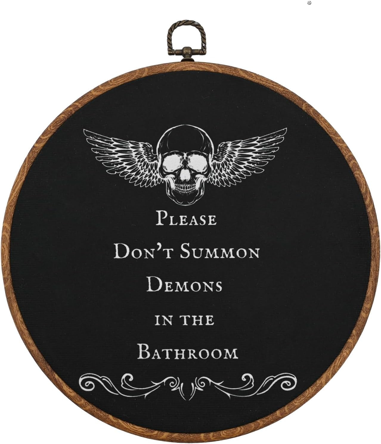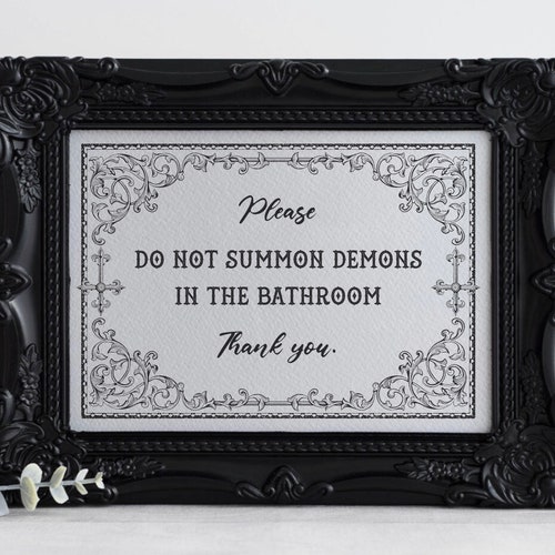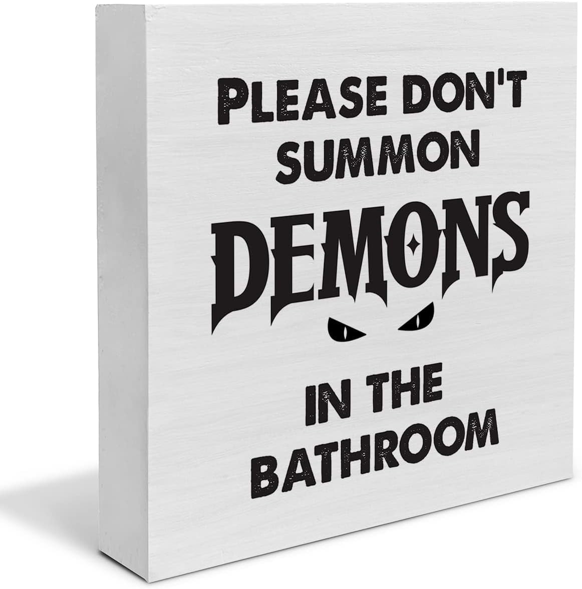 Haha, dieses Badezimmer-Schild ist einfach genial! \Please Do Not Summon Demons In The Bathroom\ - der perfekte humorvolle Spruch für alle, die es etwas anders mögen. Im Retro-Stil gestaltet, passt super zu Gothic, Witchy oder alternativen Einrichtungsstilen. Mit 20,3 x 25,4 cm Größe und 0,5 cm Dicke ist es auffällig genug, aber nicht zu aufdringlich. Komplett mit Aufhänger geliefert - einfach an die Wand hängen oder auf's Regal stellen. Perfekt für's Gästebad im Erdgeschoss - bringt deine Besucher garantiert zum Schmunzeln! Auch super als Halloween-Deko oder für alle, die das Übernatürliche lieben. Leicht und handlich - auch ein tolles kleines Geschenk für Freunde mit schwarzem Humor. Macht aus einem langweiligen Badezimmer sofort einen Raum mit Persönlichkeit. Kombinierbar mit anderen dunklen oder mystischen Deko-Elementen. Einfach ein witziges Accessoire für alle, die nicht immer alles ernst nehmen müssen und ihrem Zuhause etwas Individualität verleihen wollen!