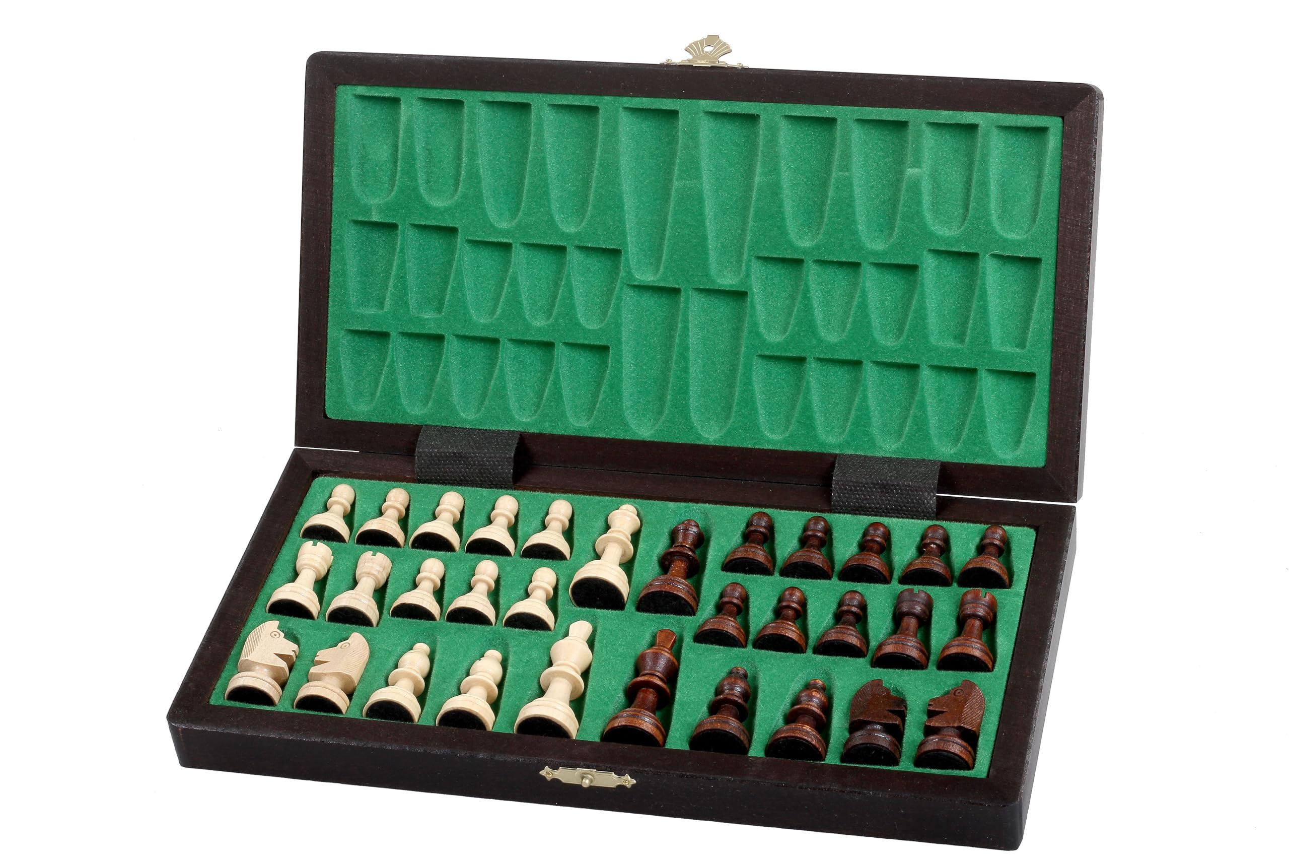 Schachspaß für unterwegs! Dieses mini Schachspiel von Sunrise Chess ist dein perfekter Reisebegleiter. Nur 12x12 cm groß, passt es in jede Tasche. Die magnetischen Figuren aus Hainbuchenholz im klassischen Staunton-Design halten sicher auf dem Brett - auch in Zug oder Auto. Das dunkel gebeizte Holz mit cremefarbenem Aufdruck sieht einfach edel aus. Besonderes Highlight: Du kannst das Gehäuse persönlich gravieren lassen! Hergestellt in der EU, also echte Qualitätsarbeit. Ob für Bahnfahrten, im Urlaub oder zwischendurch - mit diesem Set hast du immer dein Schachspiel dabei. Ein tolles Geschenk für Schach-Fans!