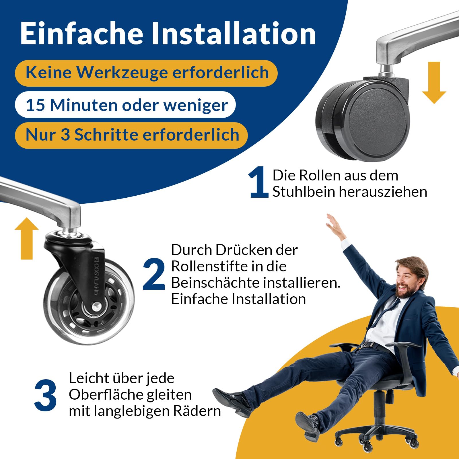 Schluss mit kratzenden, lauten Bürostuhlrollen! Dieses 5er-Set mit hochwertigen PU-Rollen verwandelt deinen Bürostuhl in einen leisen Gleiter. Speziell für Stühle mit 10mm (±0.15mm) Stangen-Durchmesser entwickelt. Die weichen Polyurethan-Rollen schonen deine Böden - keine Kratzer mehr auf Parkett, Laminat oder Fliesen! Selbst auf Teppich gleitest du mühelos und leise. Die Präzisionskugellager sorgen für butterweiches Rollverhalten, ohne lästiges Quietschen. Bis zu 295 kg Belastung halten die Rollen problemlos aus. Einfach die alten Rollen herausziehen, neue einsetzen - fertig! Ohne Werkzeug in Sekunden montiert. Perfekt fürs Homeoffice, Gaming-Setup oder Büro. Deine Nachbarn unter dir werden's dir danken, und deine Böden bleiben makellos. Endlich Ruhe und Schutz für deine Einrichtung!