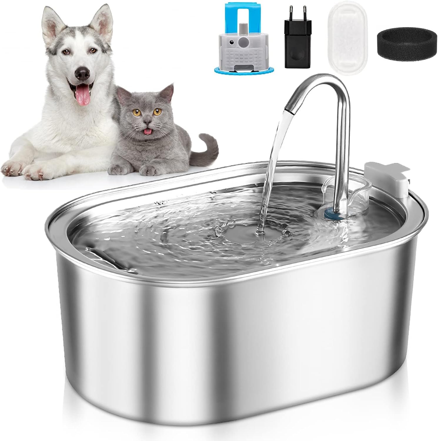• BUOAZR Katzenbrunnen Edelstahl 3.2L - Super Leiser Trinkbrunnen Mit LED Licht