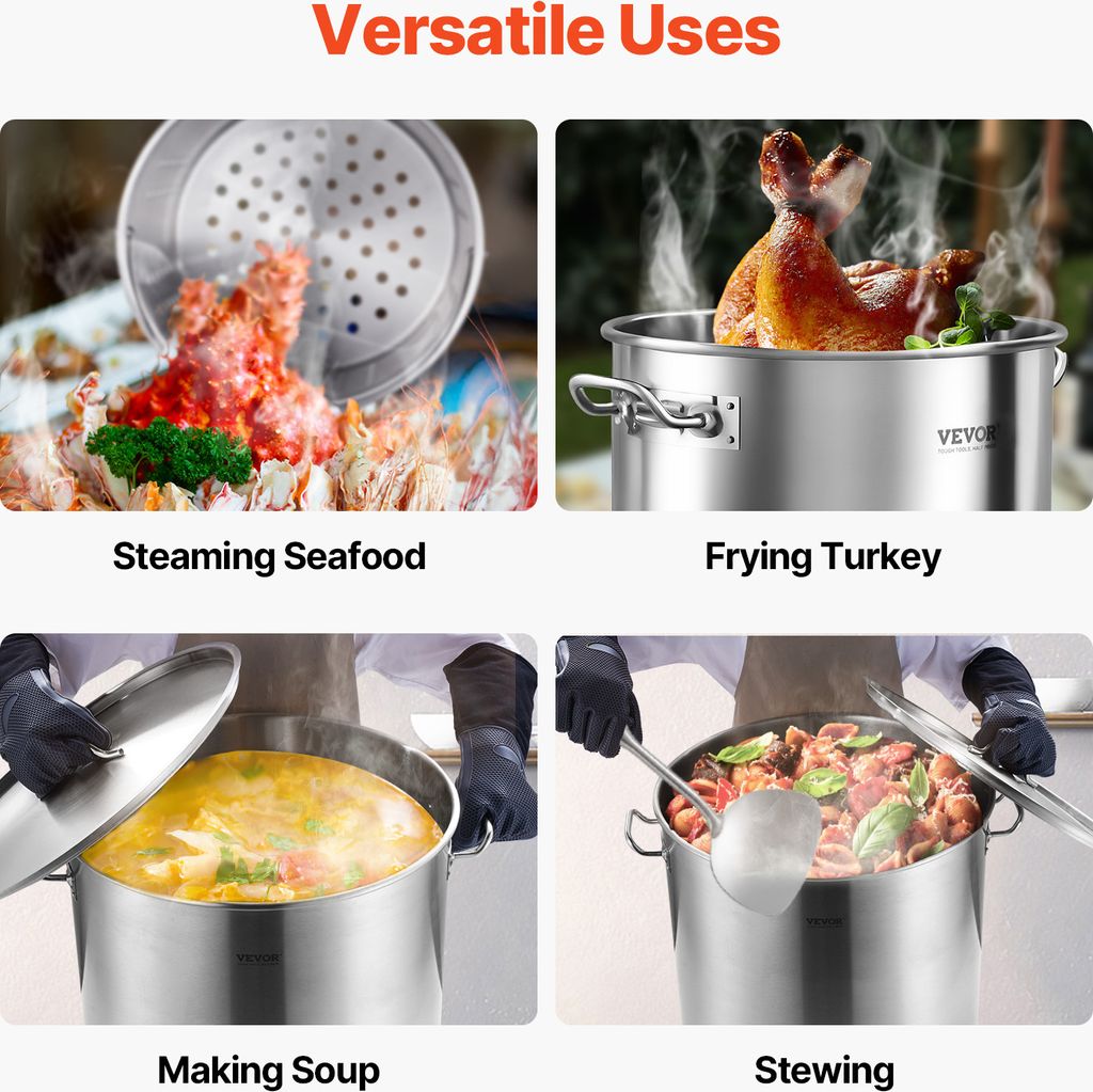 Wow, dieser CHFUNE Suppentopf ist ein echter Profi für große Mengen! Mit 70 Litern Fassungsvermögen perfekt für Partys, Catering oder große Familien. Aus hochwertigem 201 Edelstahl gefertigt - rostfrei und hitzebeständig bis 650°C. Die polierte Oberfläche ist nicht nur schön glänzend, sondern auch super leicht zu reinigen. Mit praktischen Griffen an beiden Seiten und am Deckel - sicher und bequem zu tragen. Die gerollten Kanten schützen vor Verletzungen und das sinkende Deckeldesign hält Speisen warm und sauber. Ideal für Eintöpfe, Suppen, heißes Buffet oder zum Schmoren. Mit 46,5cm Außendurchmesser und 45cm Höhe wirklich geräumig. Nur 5,6kg Nettogewicht - erstaunlich leicht für diese Größe. Perfekt für Gasherde, Elektroheizungen und Induktionsherde. Ein Topf der wirklich alles kann und in keiner Profiküche fehlen sollte!