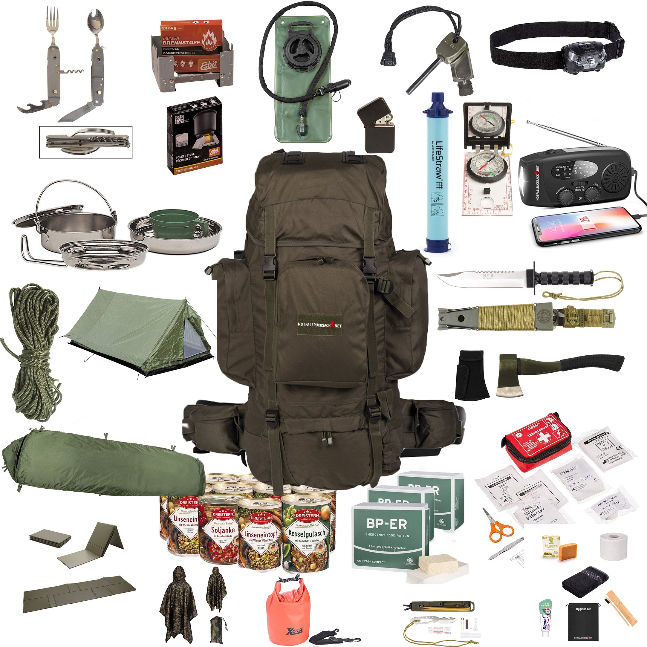 Bereit für jedes Abenteuer! Dieses 43-teilige Survival-Set hat alles, was du in der Wildnis brauchst. Von der taktischen Tasche bis zum Beil-Hammer ist für jede Situation was dabei.\n\nEnthalten sind unter anderem: Klappmesser, Taktikstift, Signalpfeife, Campinglampe, Feuerstarter, Erste-Hilfe-Ausrüstung und vieles mehr. Alles aus robusten, witterungsbeständigen Materialien.\n\nDer Notfallrucksack ist nur ca. 2kg leicht und misst 20x15x13cm - passt in jeden Kofferraum oder Wanderrucksack. Perfekt organisiert, damit du im Ernstfall sofort findest, was du brauchst.\n\nIdeal für Camping, Wandern, Angeln, Roadtrips oder als Vorsorge für Notfälle. Auch ein tolles Geschenk für Outdoor-Enthusiasten ab 12 Jahren.\n\n• 43-teiliges Komplettset\n• In taktischer Tasche\n• Ca. 2kg leicht\n• Für Outdoor & Notfälle\n• Robuste Qualität\n• Gut organisiert\n• Ab 12 Jahren geeignet\n\nEgal ob geplanter Trip oder unerwartete Panne - mit diesem Set bist du für alles gewappnet!
