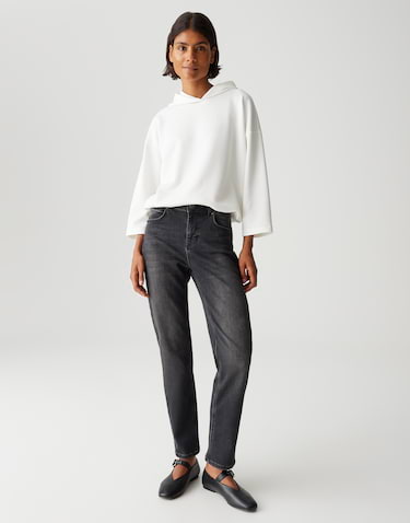 Suchst du ein Sweatshirt, das nicht nur super bequem ist, sondern auch stylisch aussieht? Dieses OPUS Sweatshirt hat eine coole Oberflächenstruktur, die deinem Look sofort mehr Tiefe verleiht. Der Regular Fit sitzt locker und lässig - nicht zu eng, nicht zu weit. Die kleinen Schlitze an den Seiten sorgen für extra Bewegungsfreiheit und Komfort. Perfekt fürs Büro, für die Freizeit oder besondere Anlässe. Aus hochwertigem Sweat-Material gefertigt, das sich angenehm weich anfühlt und lange hält. OPUS steht für stylische Alltagsmode, die Casual Chic mit femininem Stil verbindet - modern und doch zeitlos. Und das Beste: Nachhaltigkeit ist fester Bestandteil der Markenphilosophie. Ein Must-have für jede Garderobe, das sich super mit Jeans, Röcken oder Hosen kombinieren lässt. Einfach anziehen und wohlfühlen - so geht modischer Komfort!